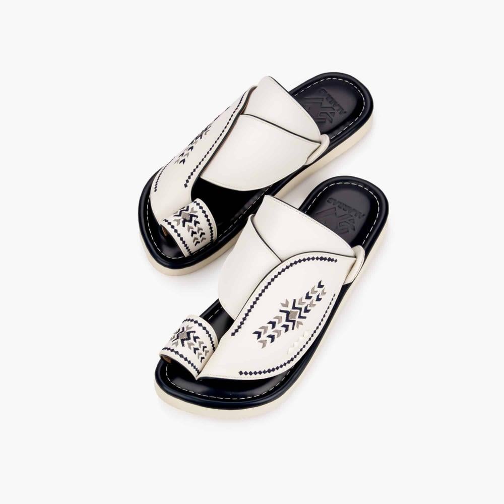 تجمع هذه الأحذية الشرقية بين الأصالة والحداثة، حيث يتألق تصميمها الفريد بالتطريز اليدوي الدقيق الذي يدمج بين اللونين الأبيض والكحلي في مزيج أنيق يناسب مختلف المناسبات. مصنوعة من الجلد الطبيعي عالي الجودة، لتضمن راحة القدم ودعمها طوال اليوم. النعل الخارجي يتميز بالمتانة والمقاومة، مما يجعله خيارًا عمليًا وأنيقًا للرجال الباحثين عن نعال شرقية بلمسة عصرية.