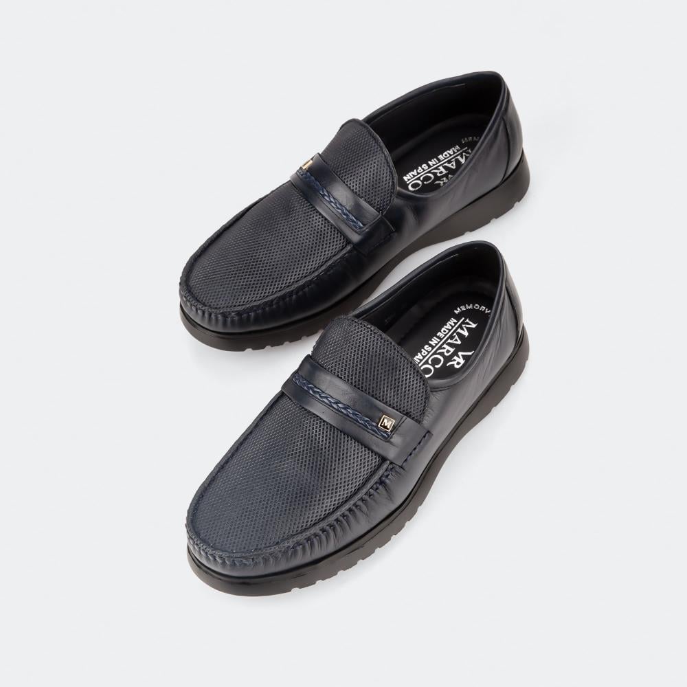 إضف لمسة من الأناقة والرقي إلى خطواتك مع هذا الحذاء الرسمي الكحلي من ماركو، المصمم بعناية لتلبية تطلعات الرجل العصري الذي يقدر الجودة والتصميم المتقن. مصنوع في إسبانيا من جلد طبيعي أصلي عالي الجودة، يضمن لك هذا الحذاء مزيجًا مثاليًا من الراحة والأناقة في كل مناسبة.