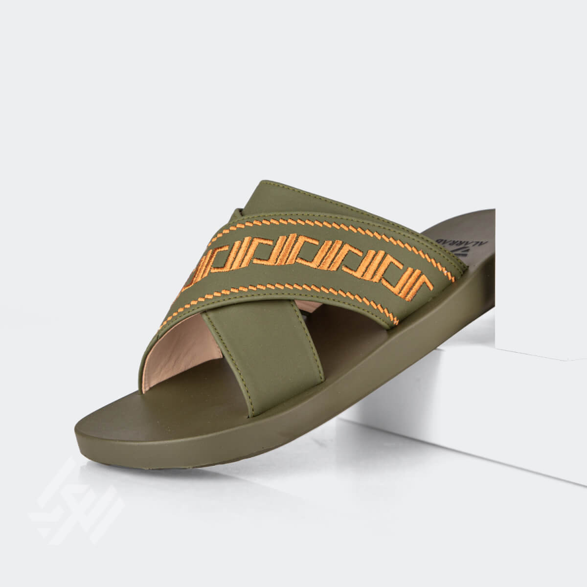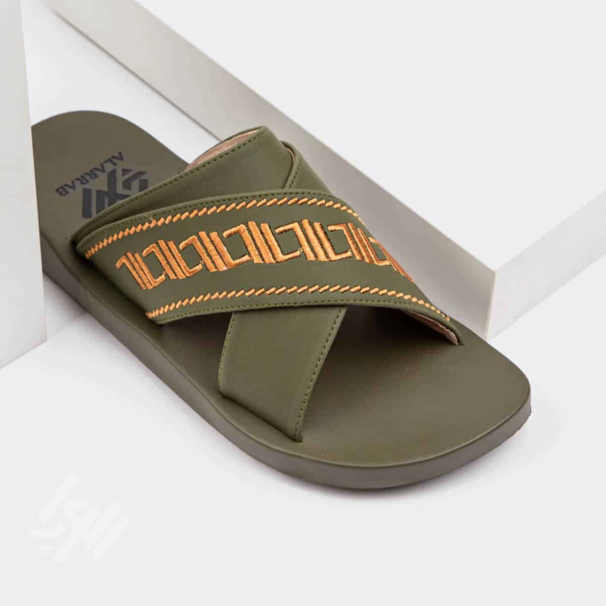 مميزات حذاء خليجي من الجلد الزيتي المطرز