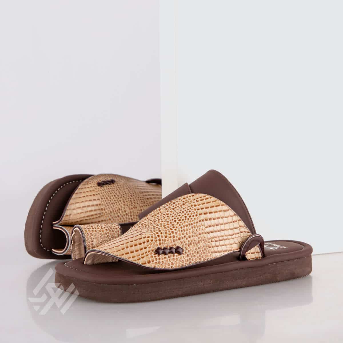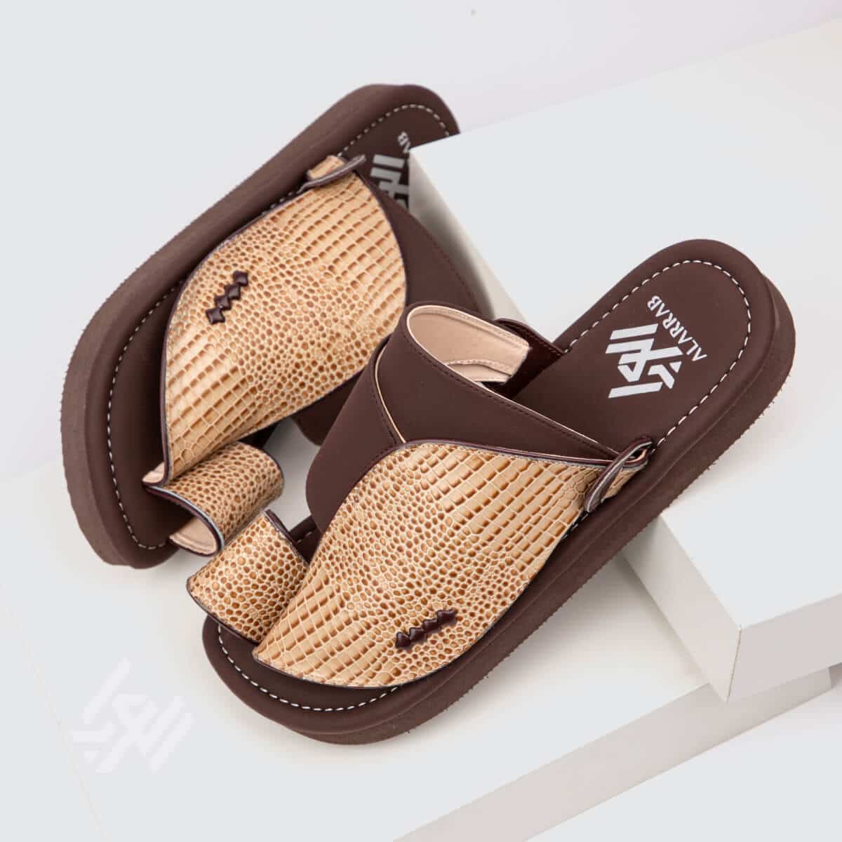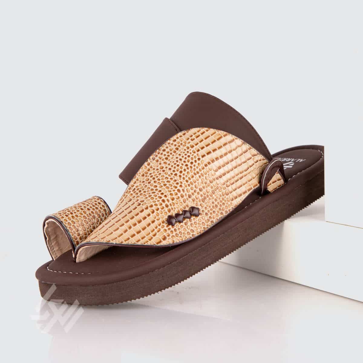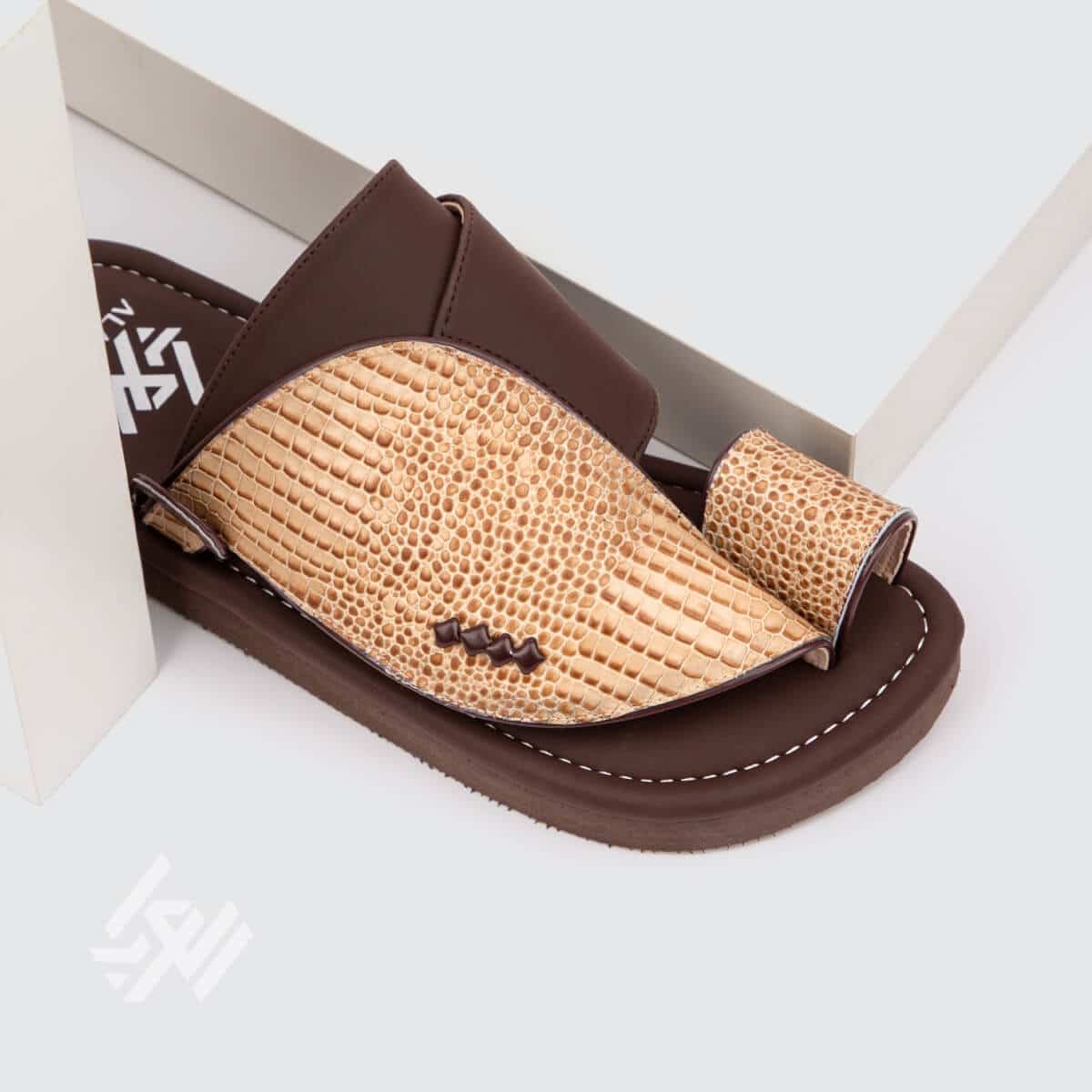 مميزات نعال سعودي جلد بني وبيج بنقشة ثعبان