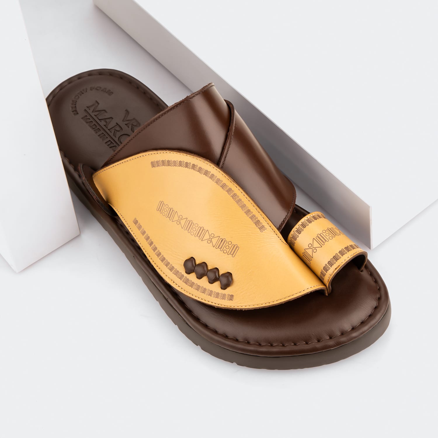مميزات حذاء شرقي بني وأصفر فاخر: