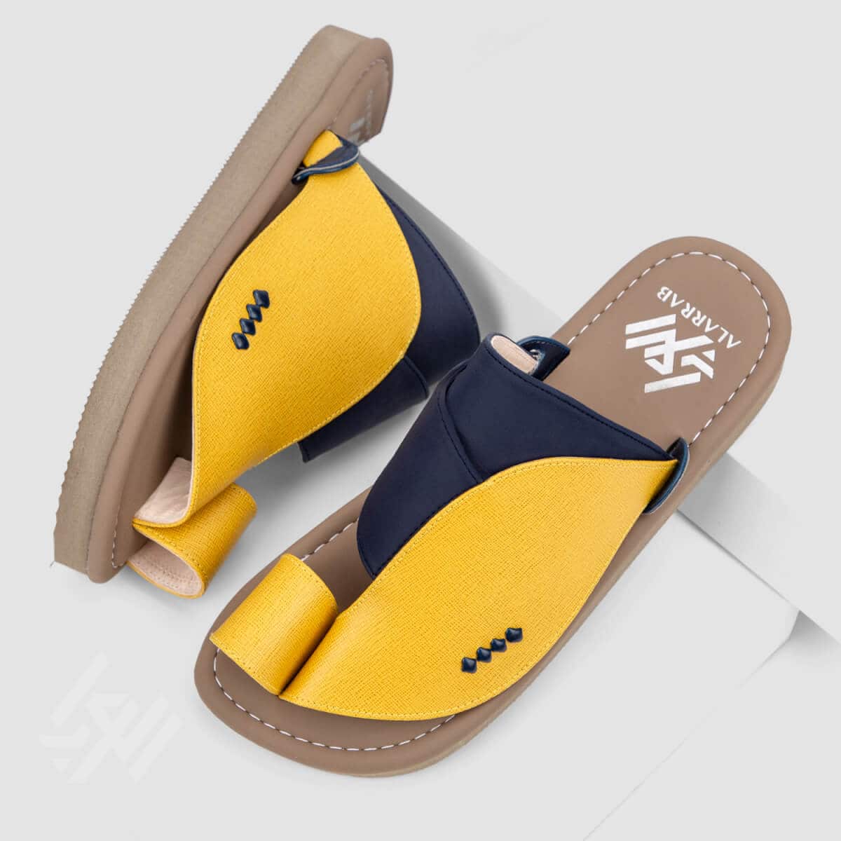 مميزات الحذاء الشرقي السعودي بخامات إيطالية أصفر وكحلي: