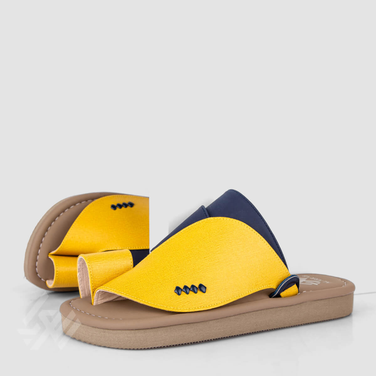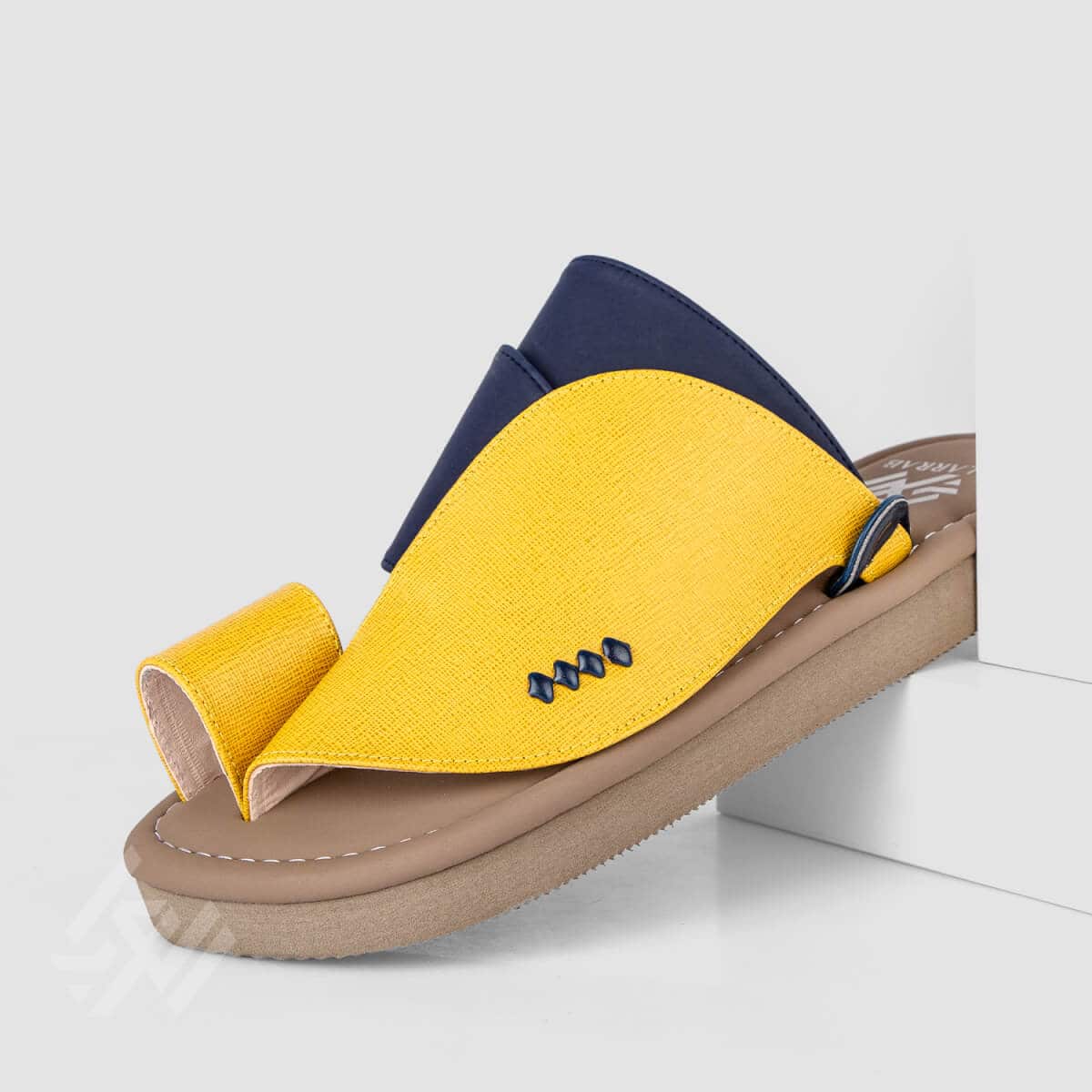 حذاء شرقي سعودي بخامات إيطالية أصفر وكحلي