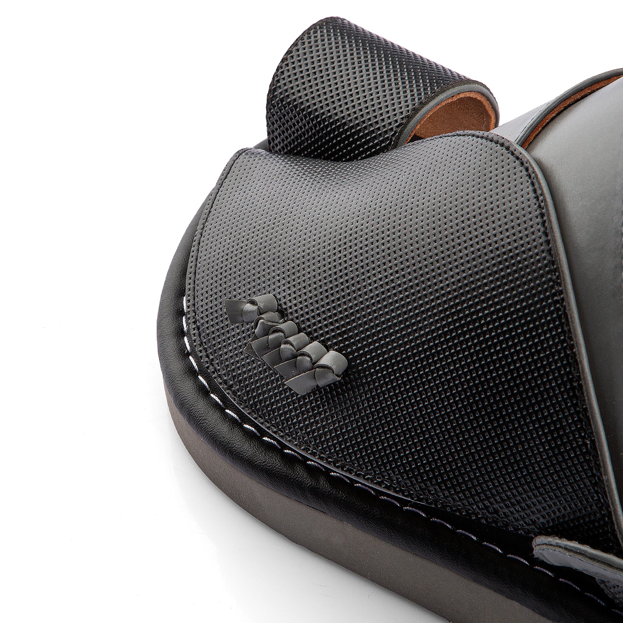 هذا الحذاء الشرقي يدمج بين الفخامة والراحة في تصميم فريد، مصنوع من جلد طبيعي بلونين أسود ورمادي جذاب. تصميمه المتقن والنعل الطبي المبتكر يمنحانك إحساسًا بالاسترخاء والثقة مع كل خطوة. هو الخيار الأفضل لإطلالة عملية ومريحة، سواء في المناسبات الرسمية أو غير الرسمية، لأنه يدمج بين الأناقة والجودة بشكل خلّاب.