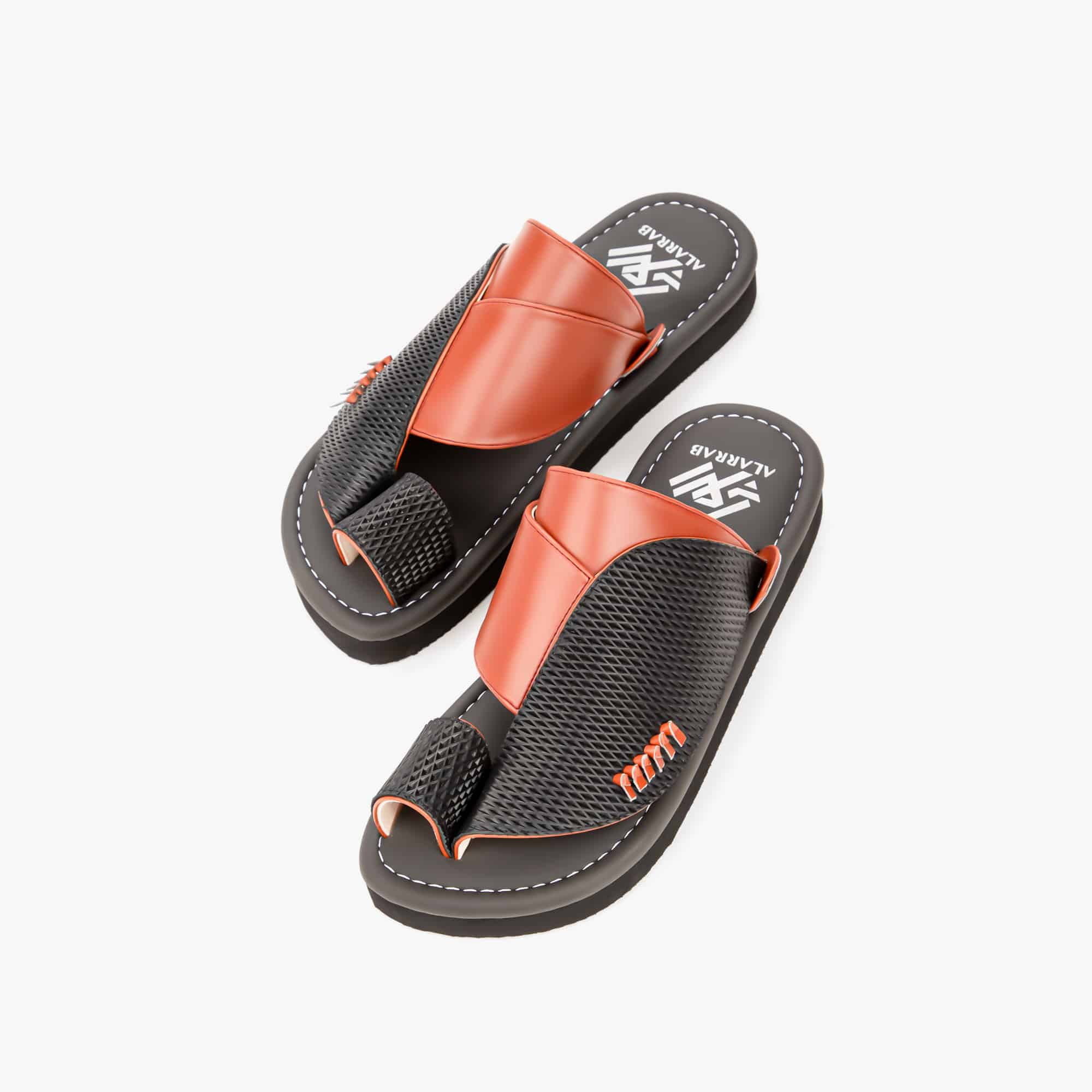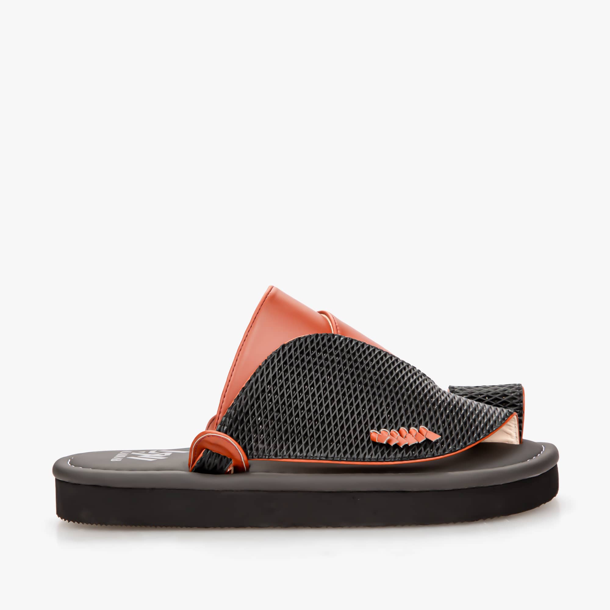 حذاء شرقي وطني جلد عسلي وأسود مزركش يقدم تصميمًا عصريًا يجمع بين الأناقة الشرقية والراحة الفائقة. مثالي للمناسبات اليومية والاستخدام العملي.