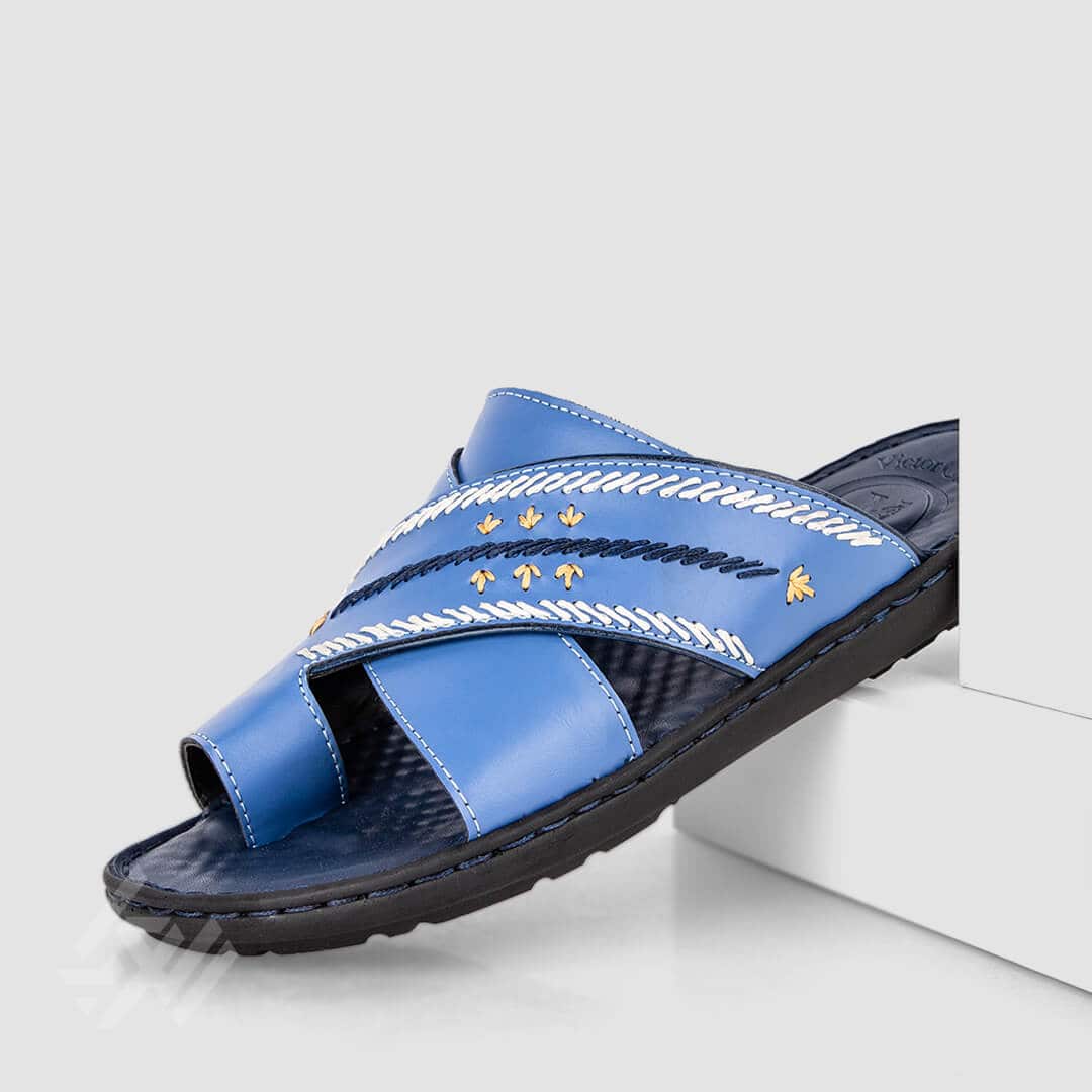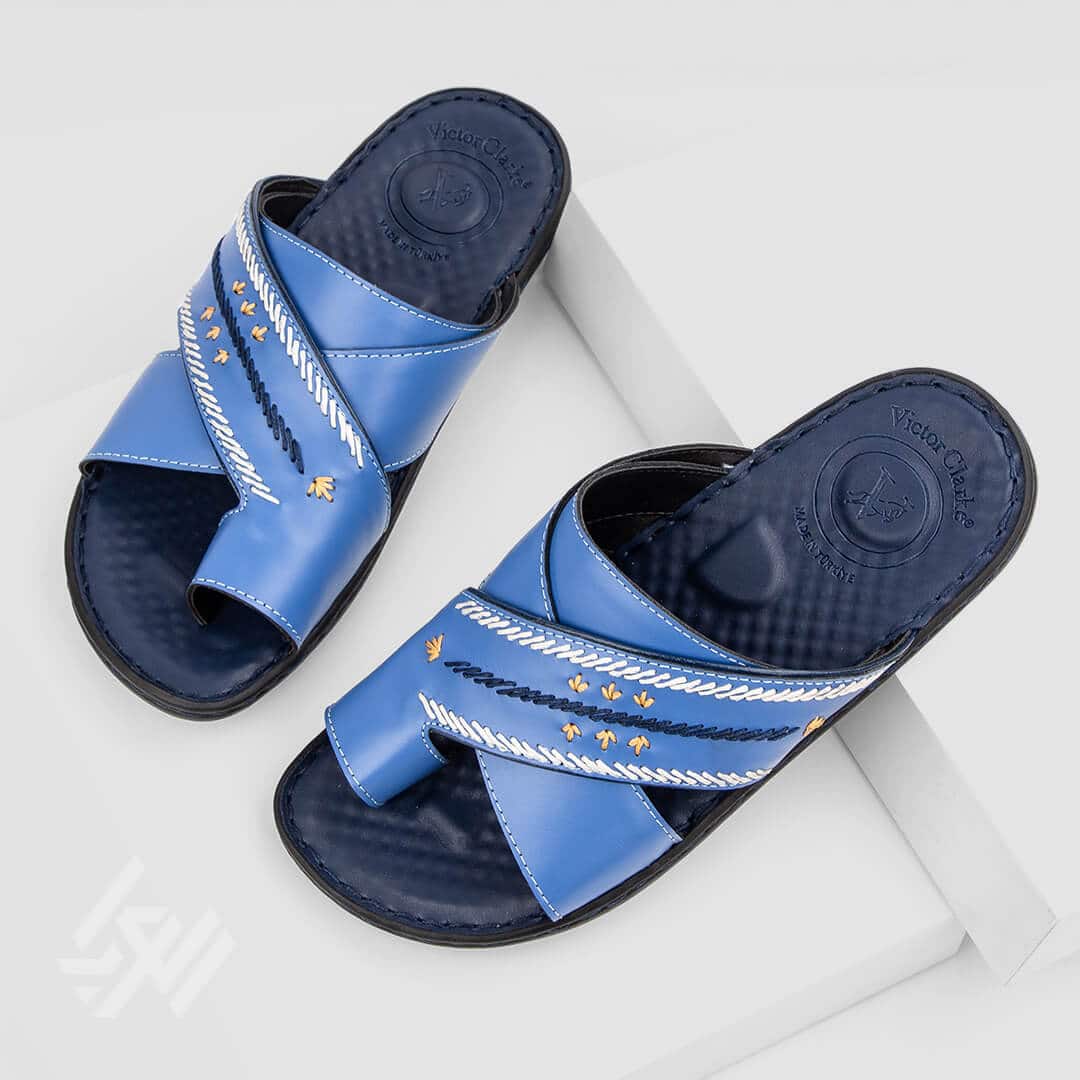 أضف لمسة من الراحة الفاخرة والأناقة العصرية مع شبشب طبي رجالي من فيكتور كلارك، باللون الأزرق المطرز و المصمم خصيصًا للرجل الخليجي الباحث عن الجودة.