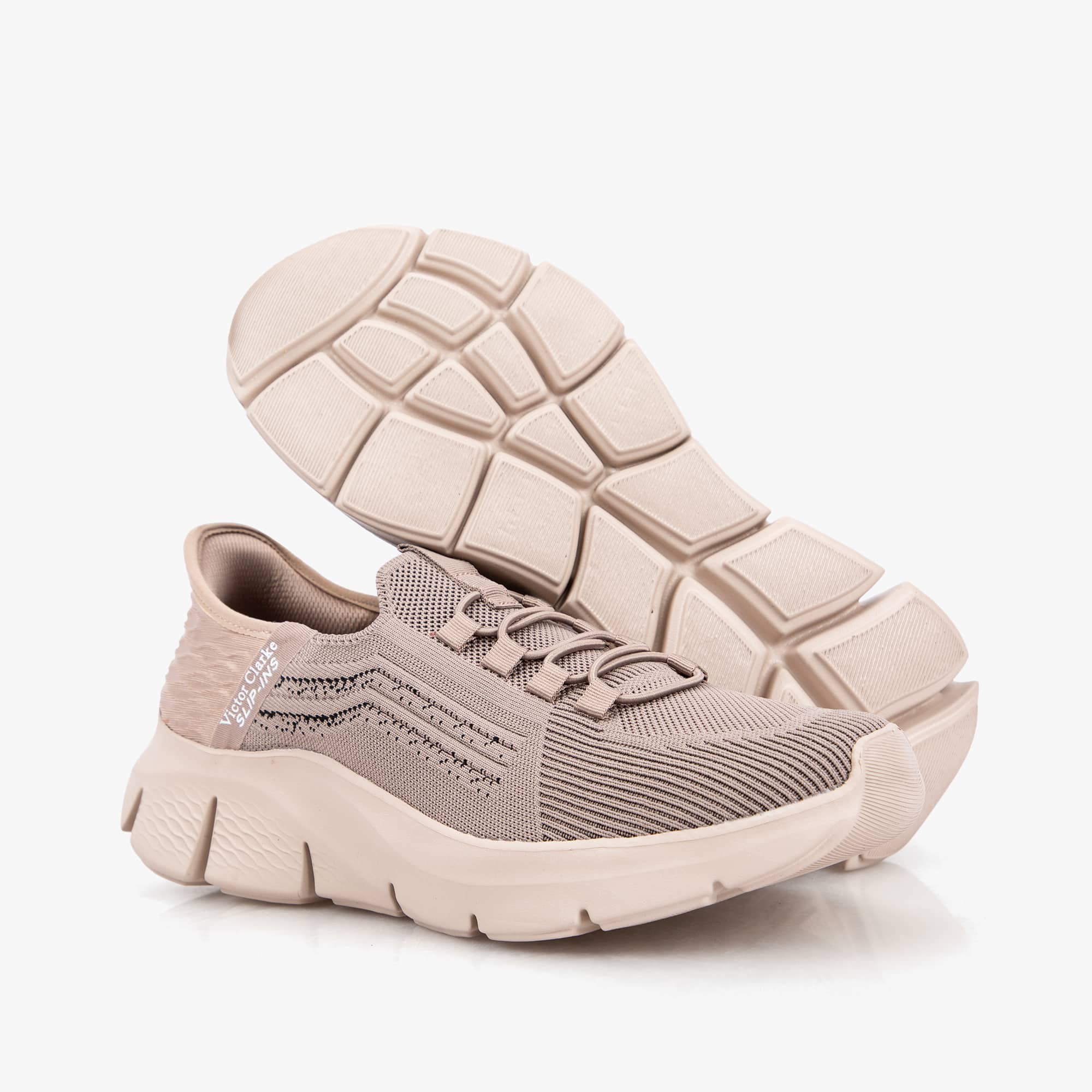 حذاء كاجوال كلاسيكي طبي من ماركة فيكتور كلارك من القماش البيج