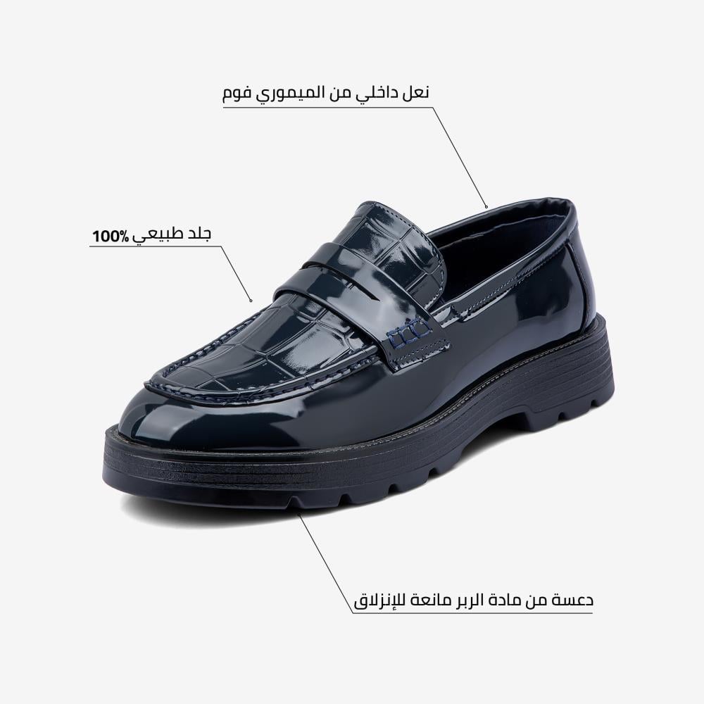 إرتق بإطلالتك مع هذا الحذاء اللوفر الفاخر بلونه الكحلي اللامع، وتصميمه المميز المستوحى من جلد التمساح. تم تصميمه بدقة ليناسب الإطلالات الخليجية الرسمية أو الأنيقة، ويمنحك حضورًا راقياً في كل مناسبة.