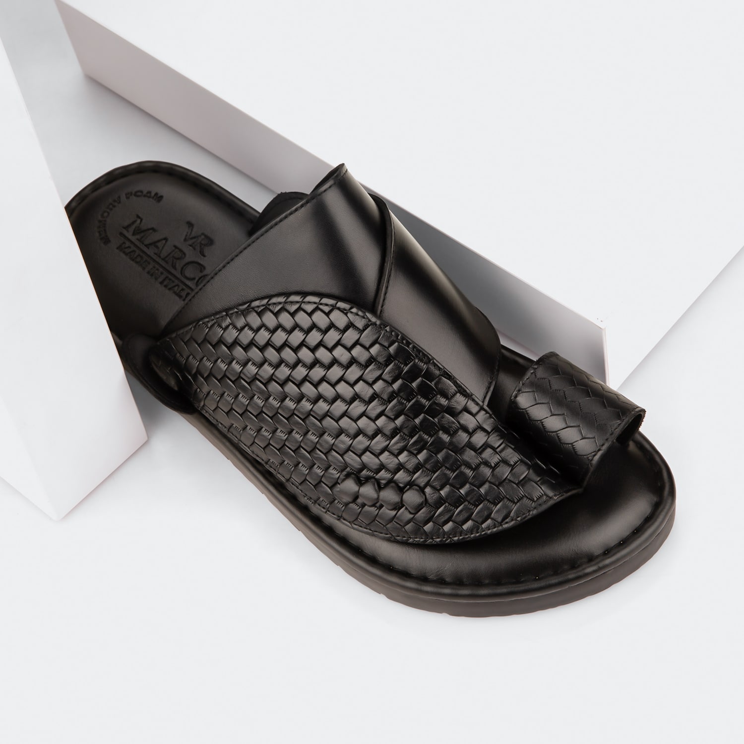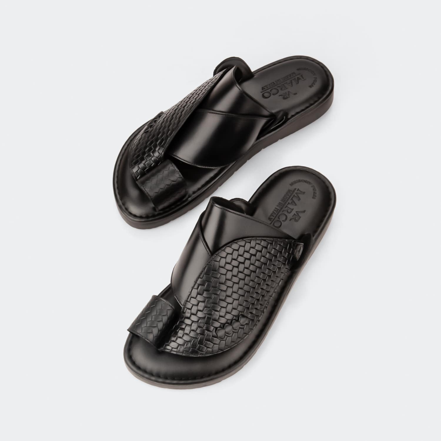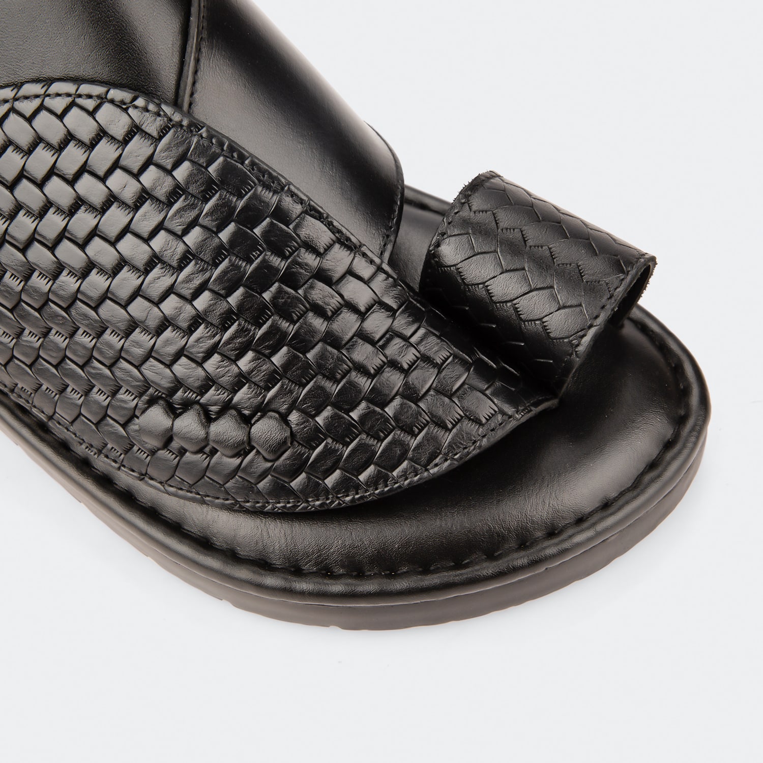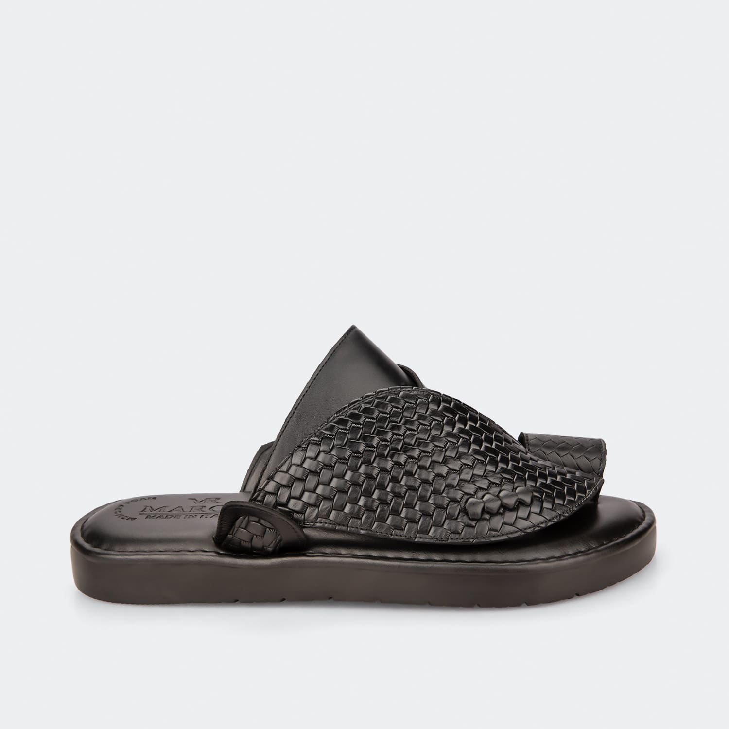 تمتع بالأناقة والفخامة مع خف شرقي إيطالي أسود بنقشة مضفرة. هذا الحذاء المصنوع بعناية في إيطاليا يجمع بين الراحة العالية والتصميم العصري. يتميز بأرضية ميموري فوم وبطانة من الجلد الطبيعي لمزيد من الراحة. اكتشف تشكيلتنا الكاملة من الأحذية والنعال الشرقية الإيطالية.