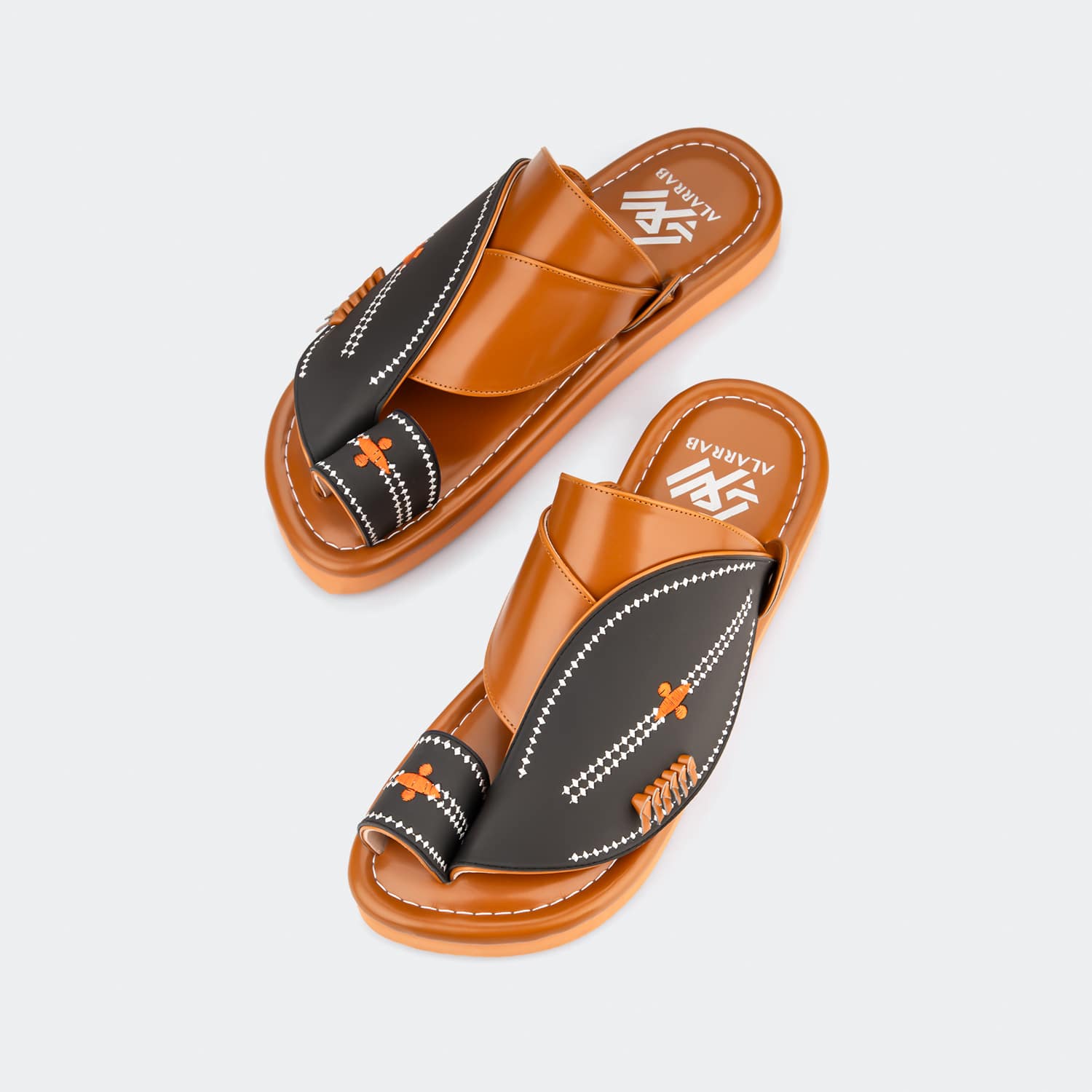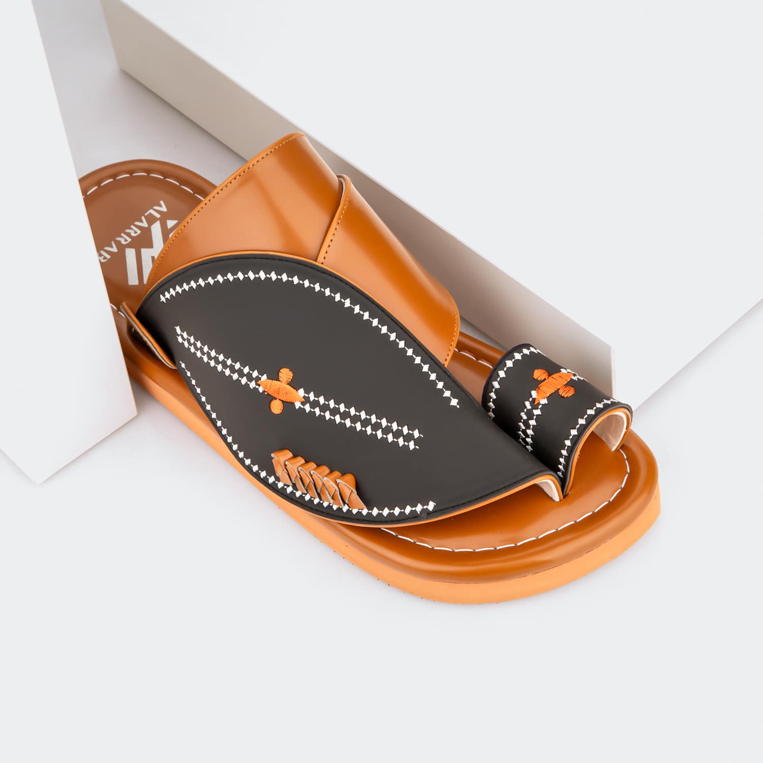 خف وطني شرقي مطرز بني وبرتقالي: التراث يلتقي بالأناقة!
