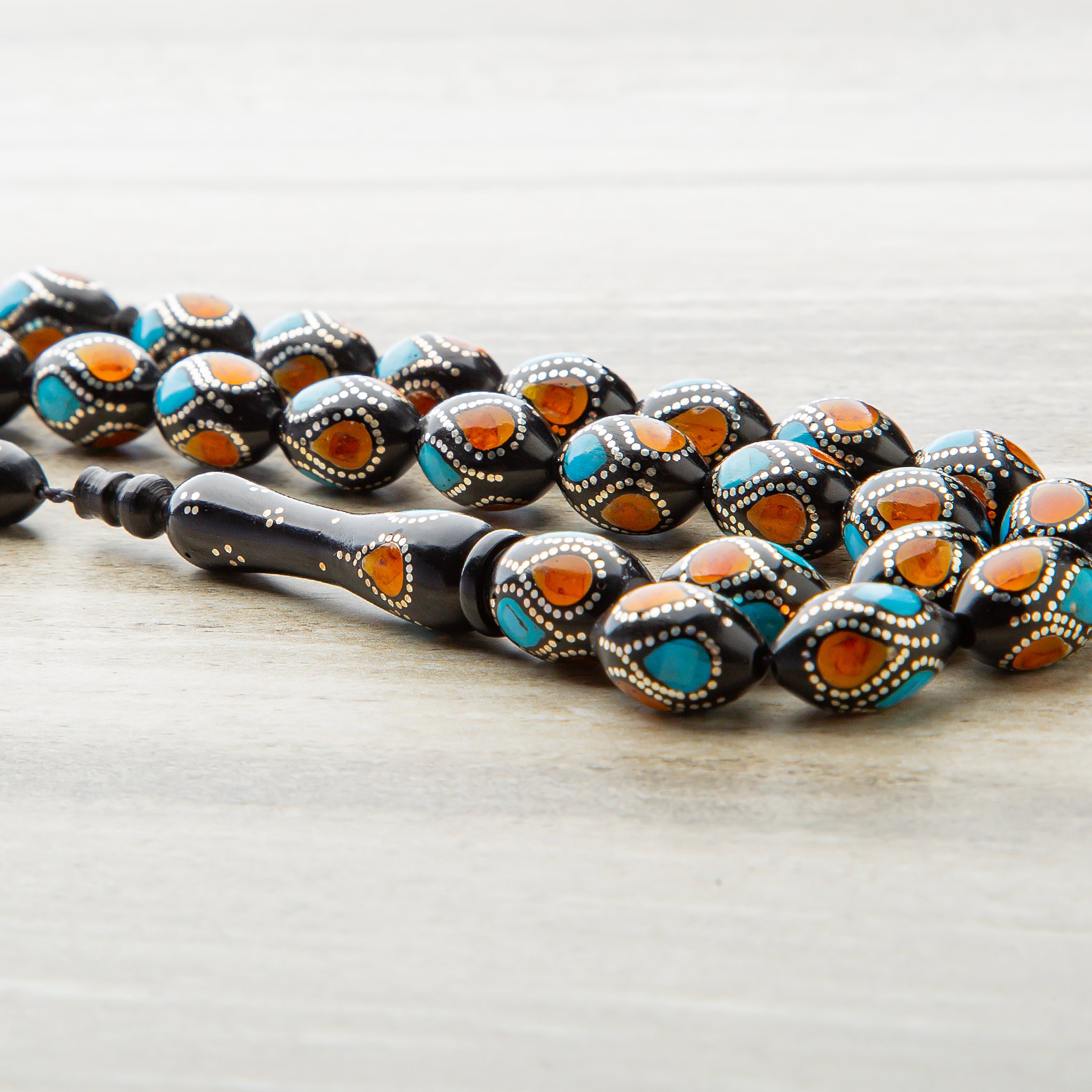 مميزات السبحة الخرزية بالألوان السوداء والأصفر والسماوي