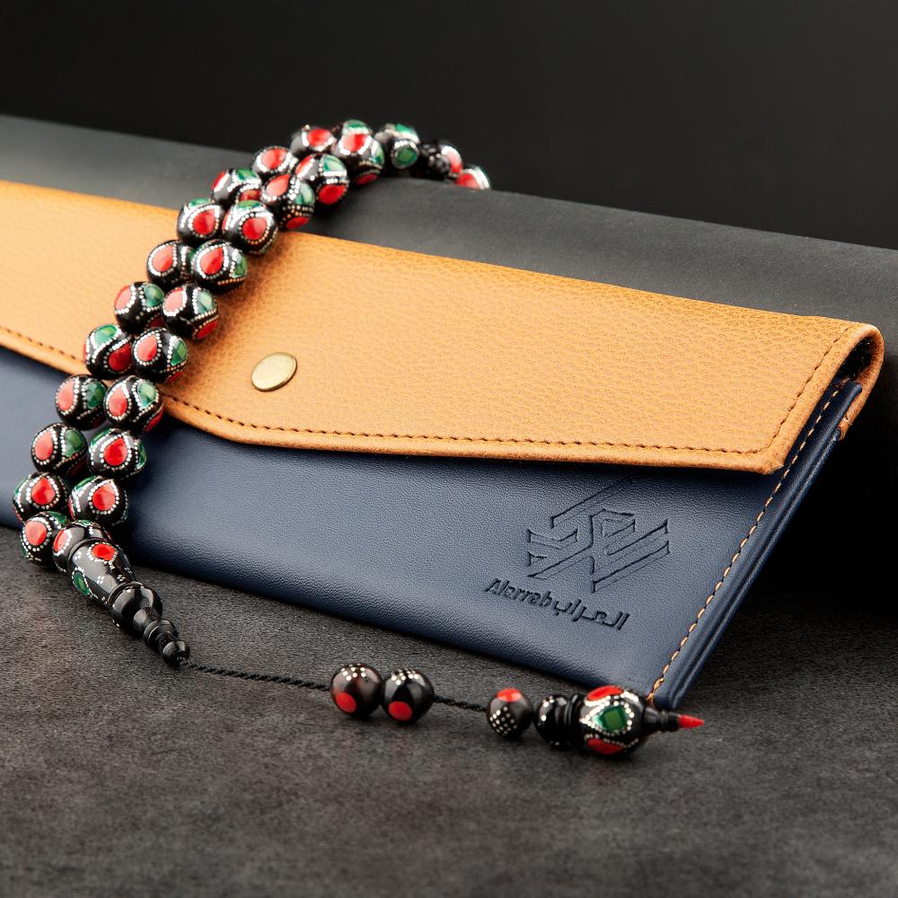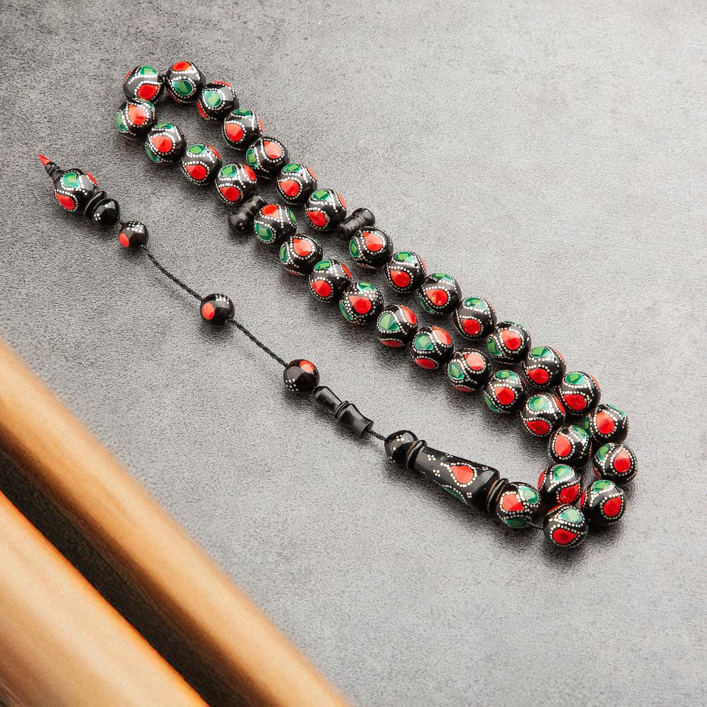 سبحة رائعة من اللون الأسود بنقوش أحمر وأخضر - تألق بتصميم استثنائي!