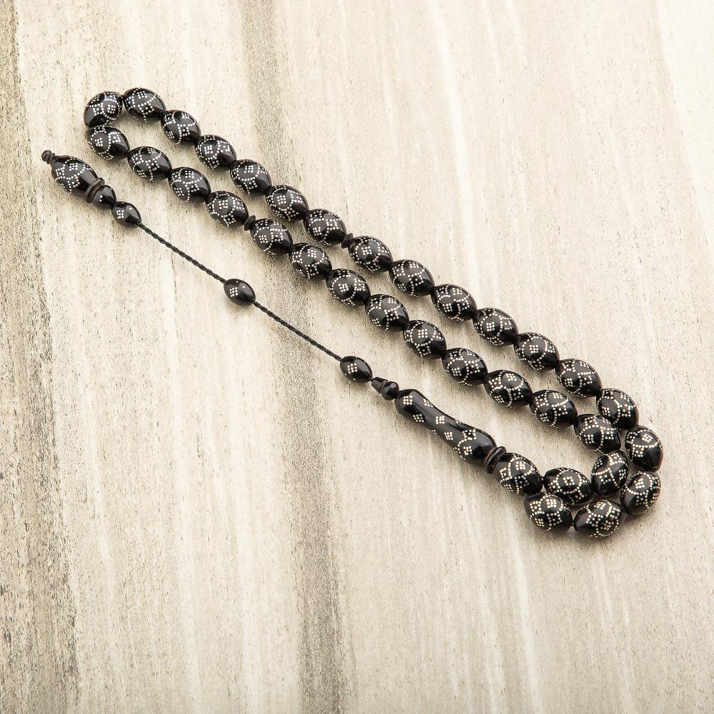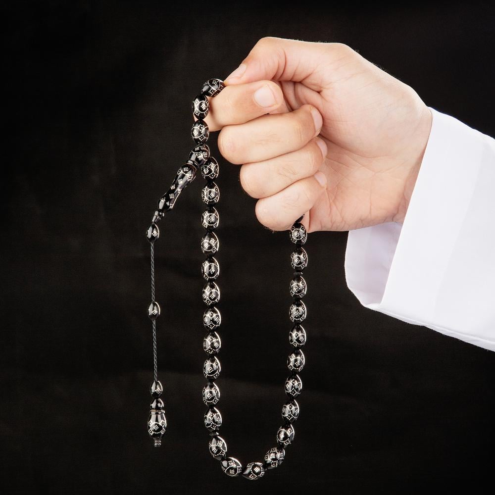سبحة سوداء أنيقة بنقوش فضية ناعمة للمسة من الفخامة الكلاسيكية!