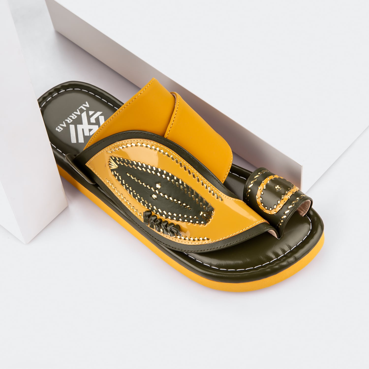 حذيان شرقي مطرز أصفر وزيتوني: الأناقة المستوحاة من التراث السعودي!