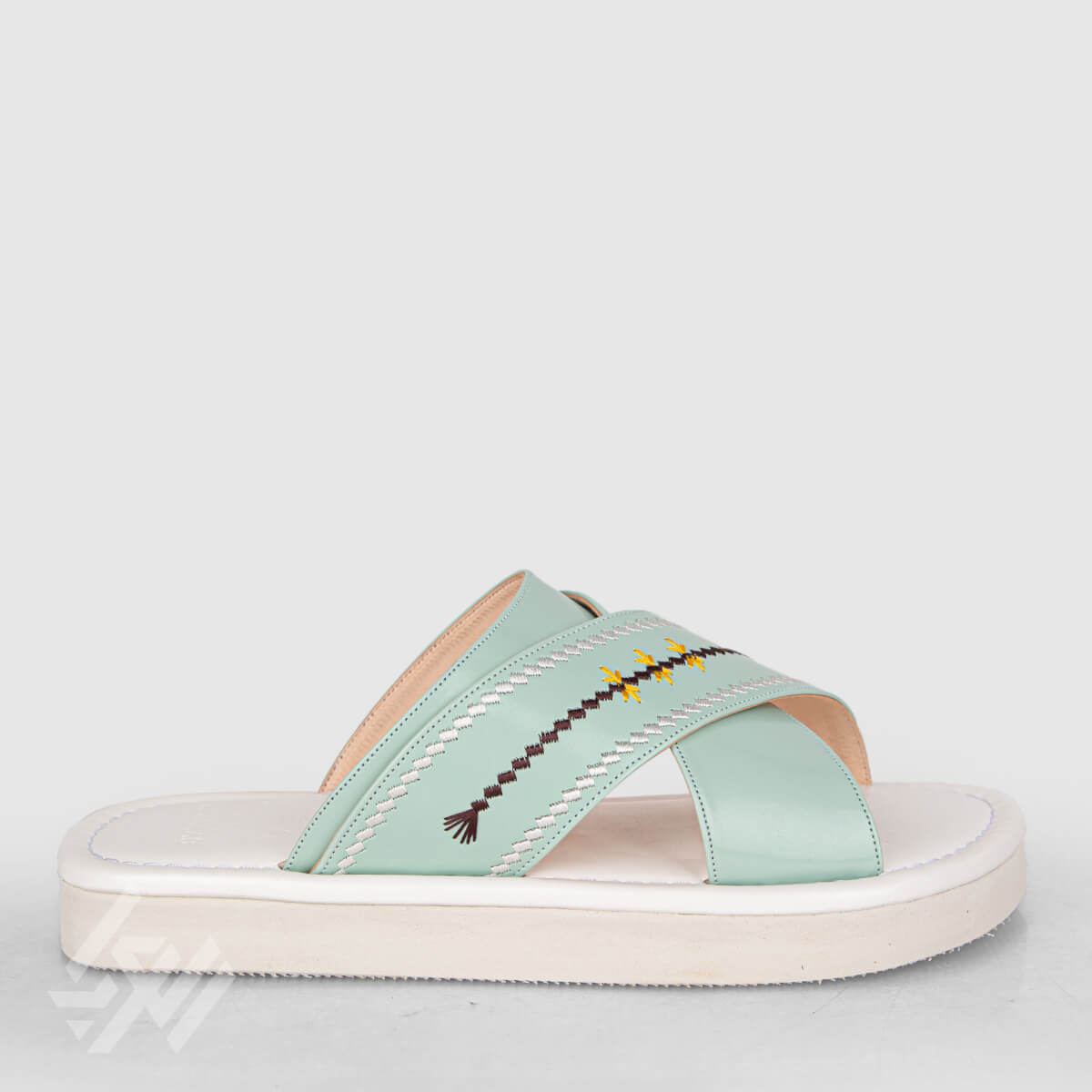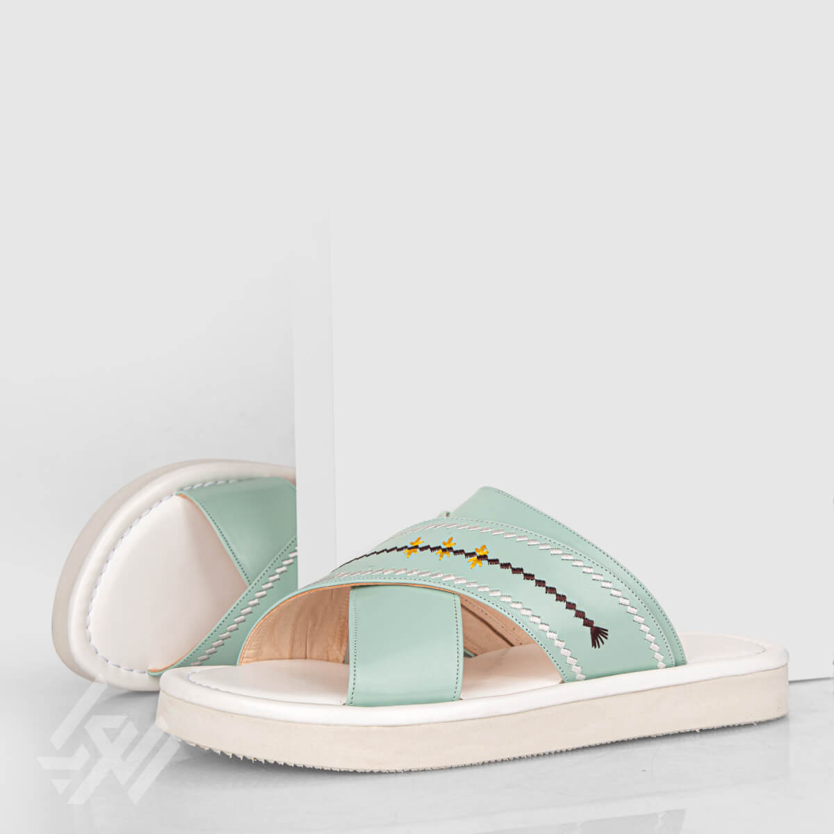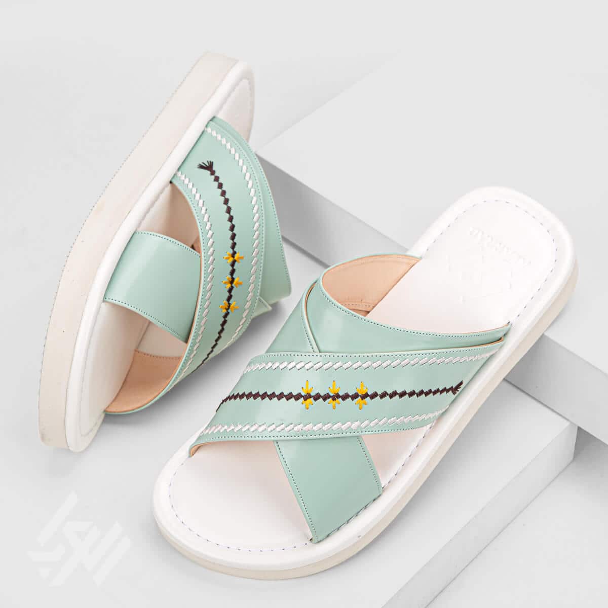 ميزات نعال شرقي مطرز بألوان النعناع والأبيض
