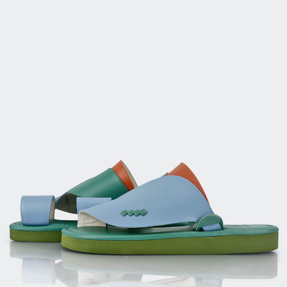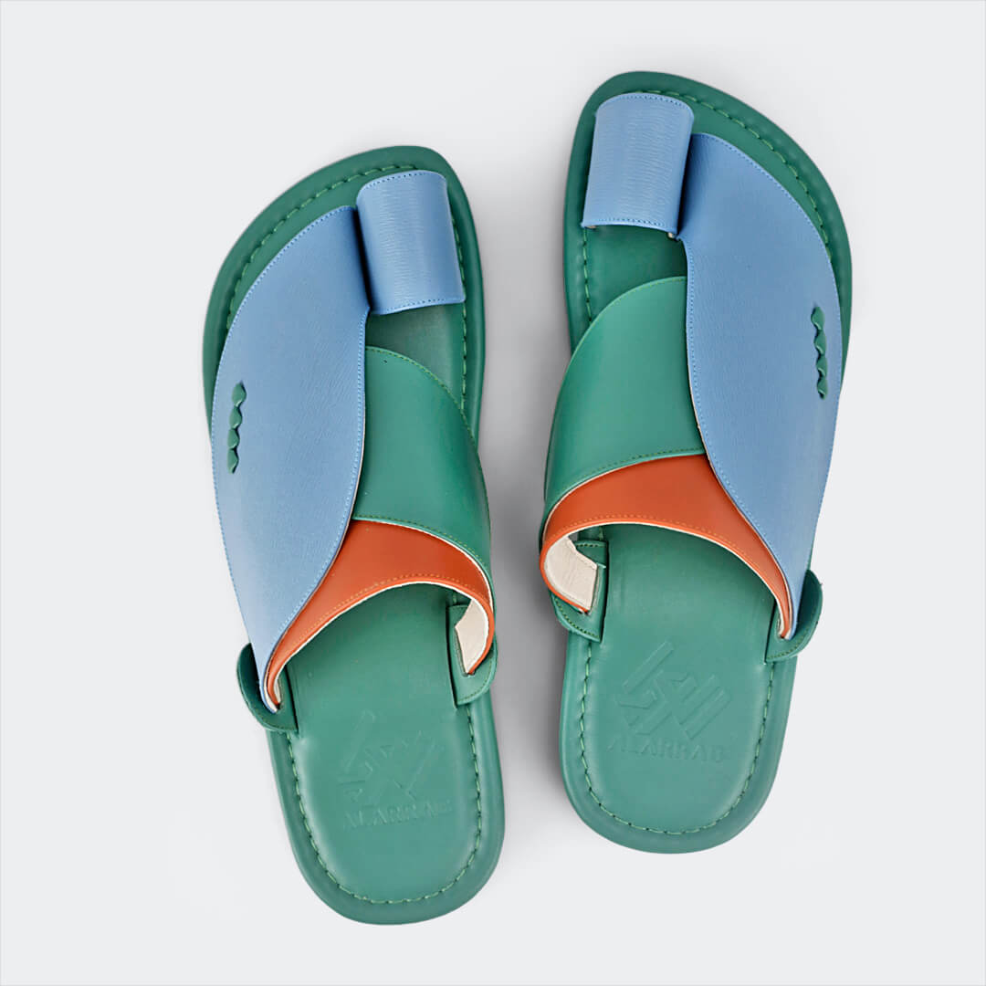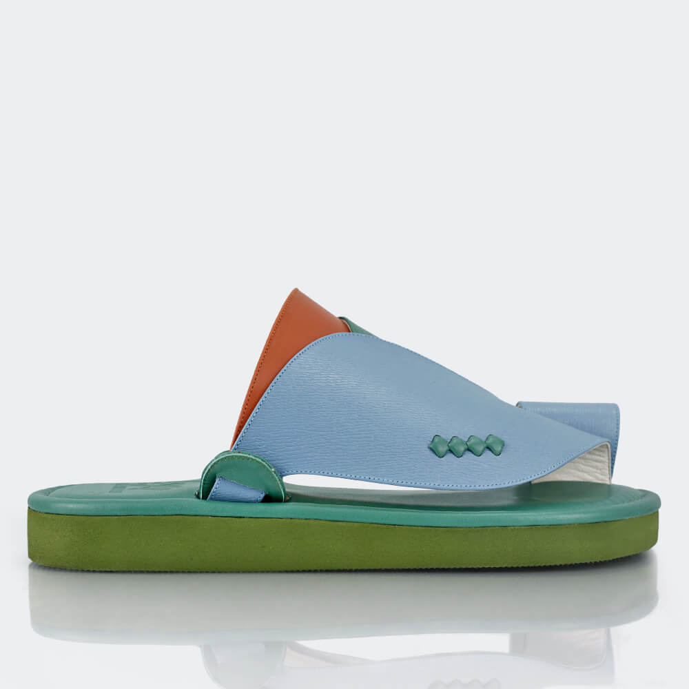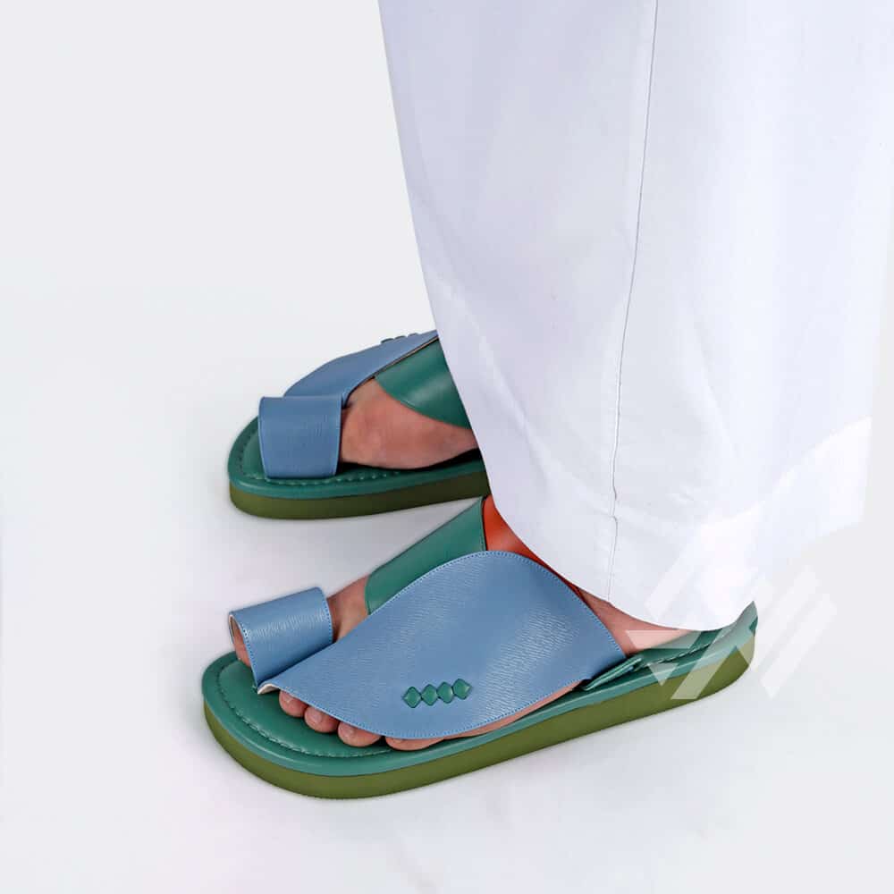 نعال سعودي زبيري من الجلد الإيطالي سماوي وفيروزي