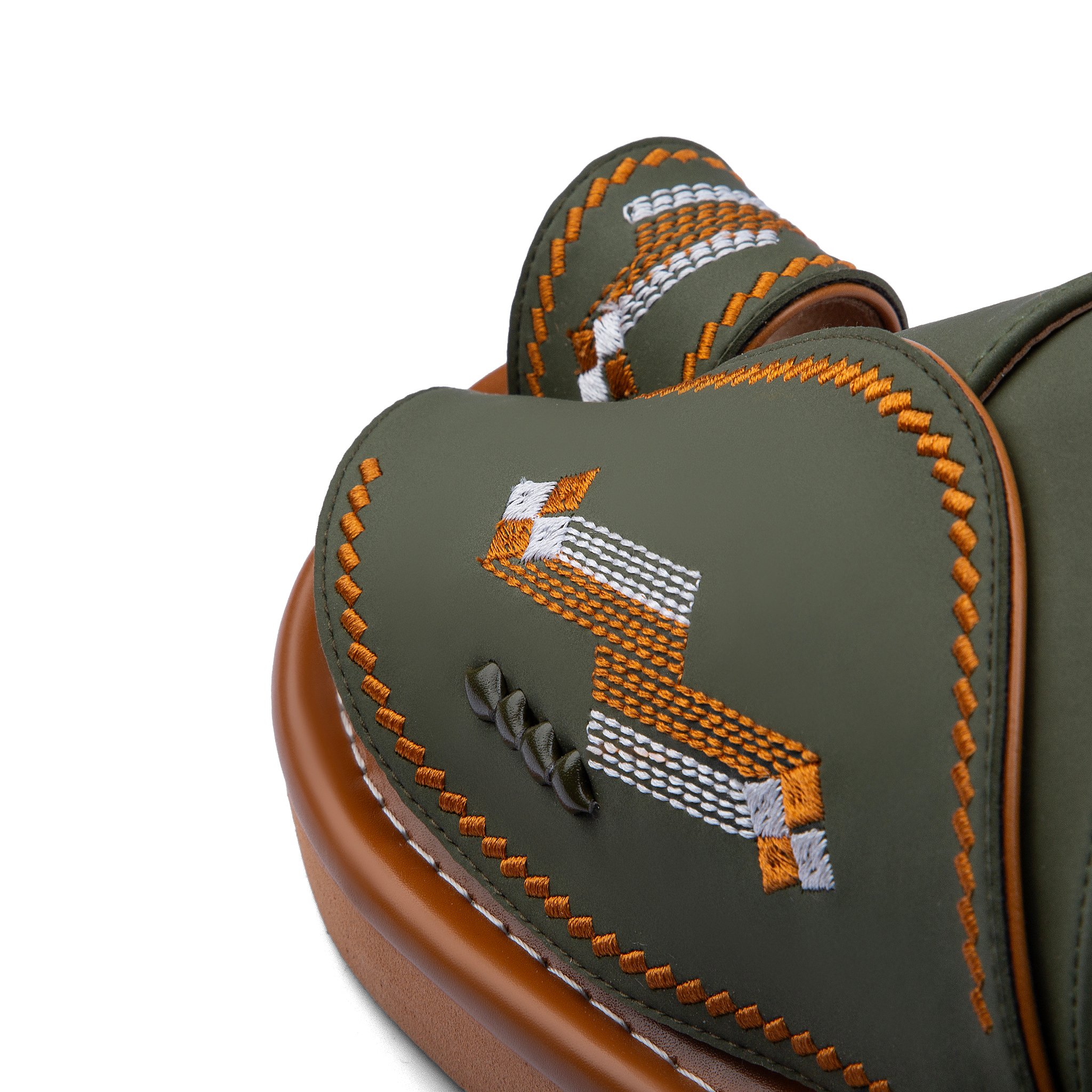 صندل جلدي فاخر باللون الأخضر بنقشة سعودية مستوحاة من التراث مع تطريزات حصرية تضيف لمسة من الأصالة والرقي. صُنع يدويًا بعناية باستخدام الجلد الطبيعي عالي الجودة ليمنحك تجربة تجمع بين الراحة والأناقة. يتميز الصندل بتصميم كلاسيكي وأرضية مقاومة للانزلاق توفر ثباتًا مثاليًا، مما يجعله خيارًا عمليًا وأنيقًا للاستخدام اليومي والمناسبات الرسمية. النقشة المميزة، المحمية قانونيًا، تعكس الجمال السعودي بأسلوب عصري وأنيق.