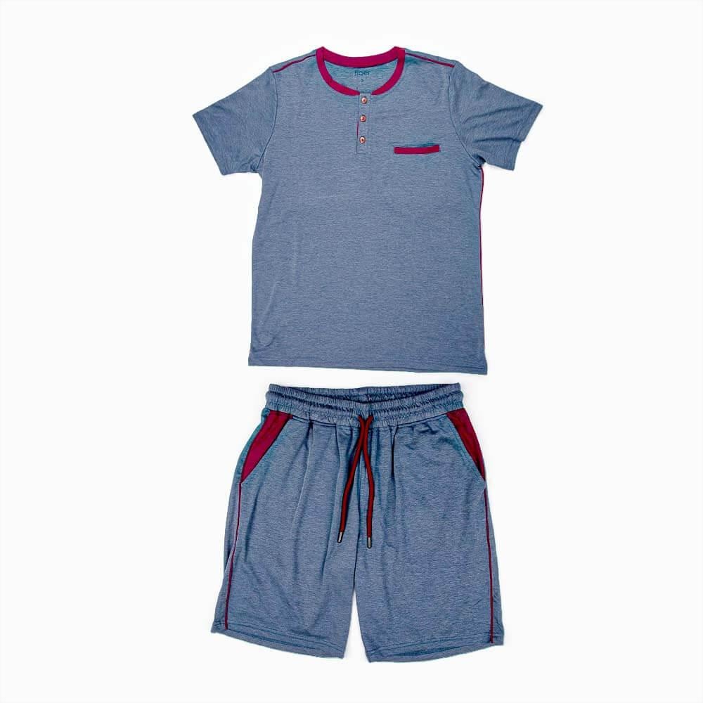 طقم بيجامة من قطعتين تركي رصاصي سادة