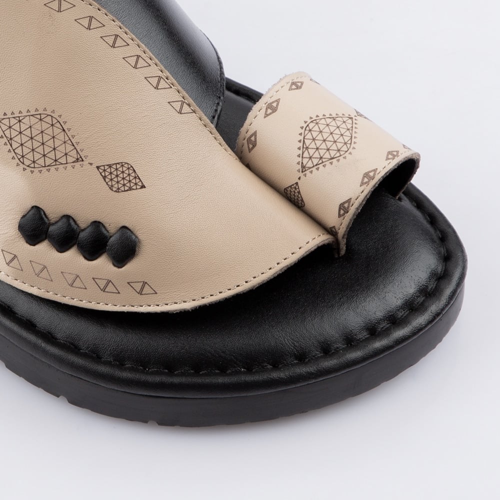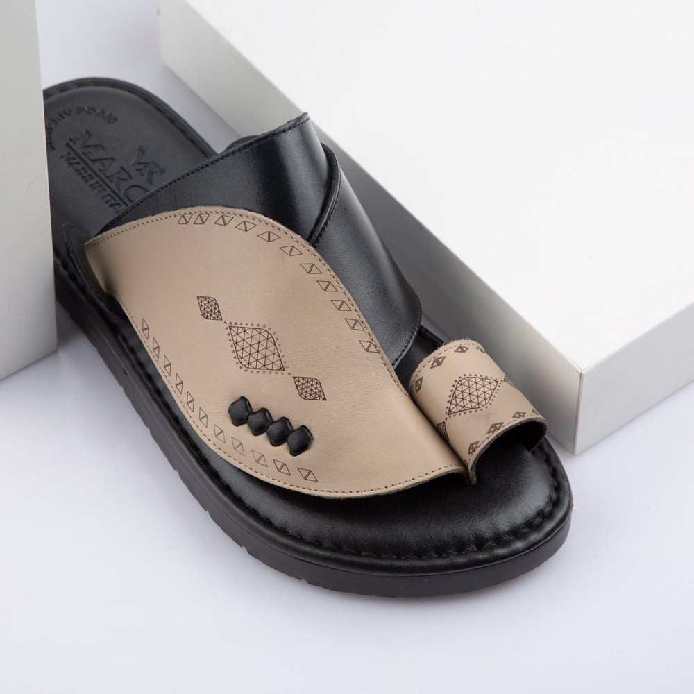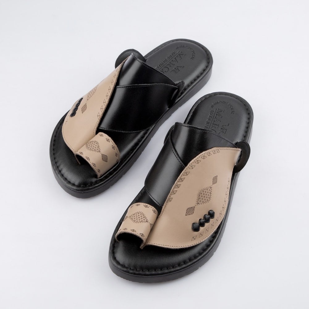 ارتقِ بإطلالتك مع مداس إيطالي بيج وأسود بتصميم شرقي فاخر ونقوش أنيقة. مصمم من أجود الخامات الإيطالية مع أرضية ميموري فوم لدعم قدميك وراحتك طوال اليوم. احصل عليه الآن لتجمع بين الفخامة والراحة في كل خطوة.