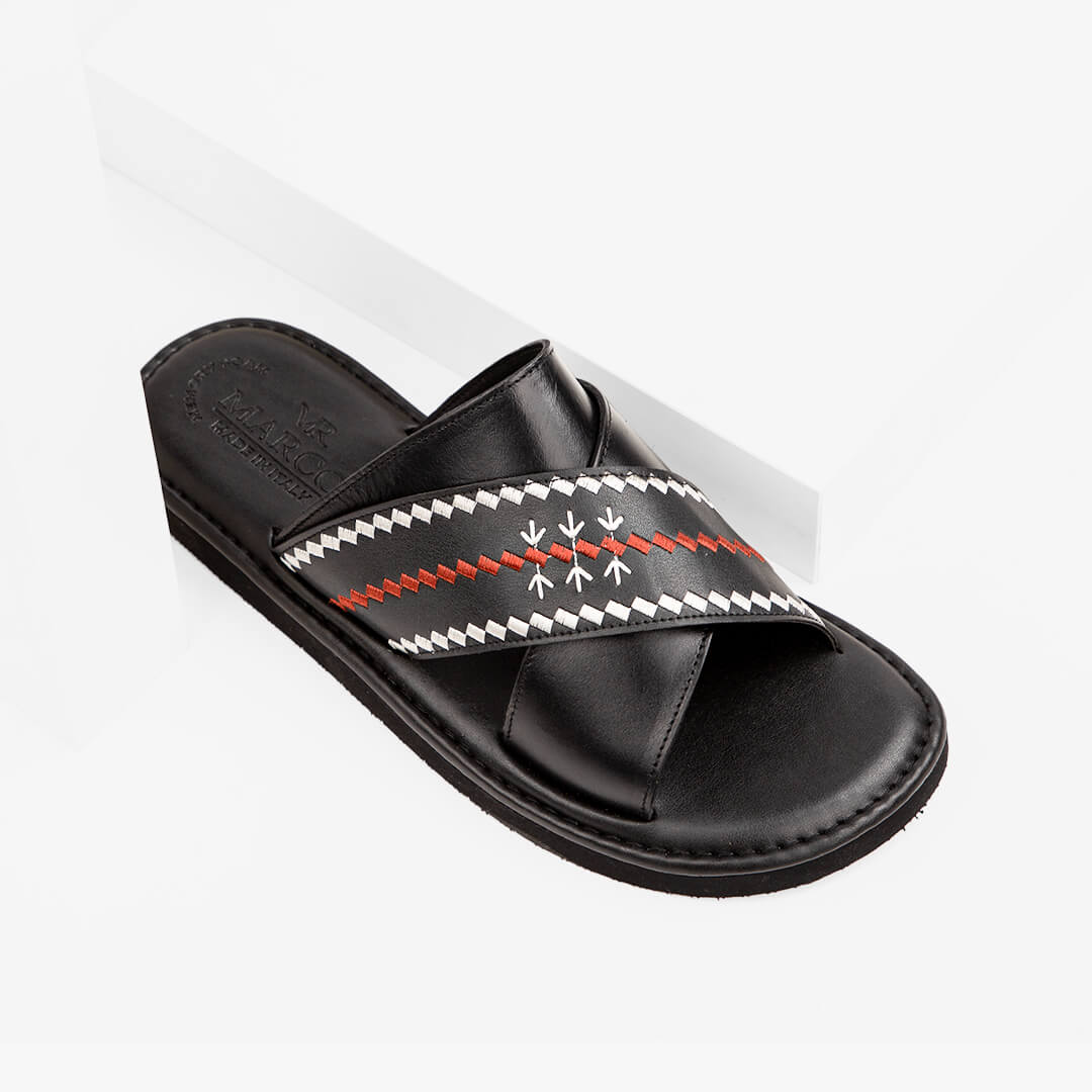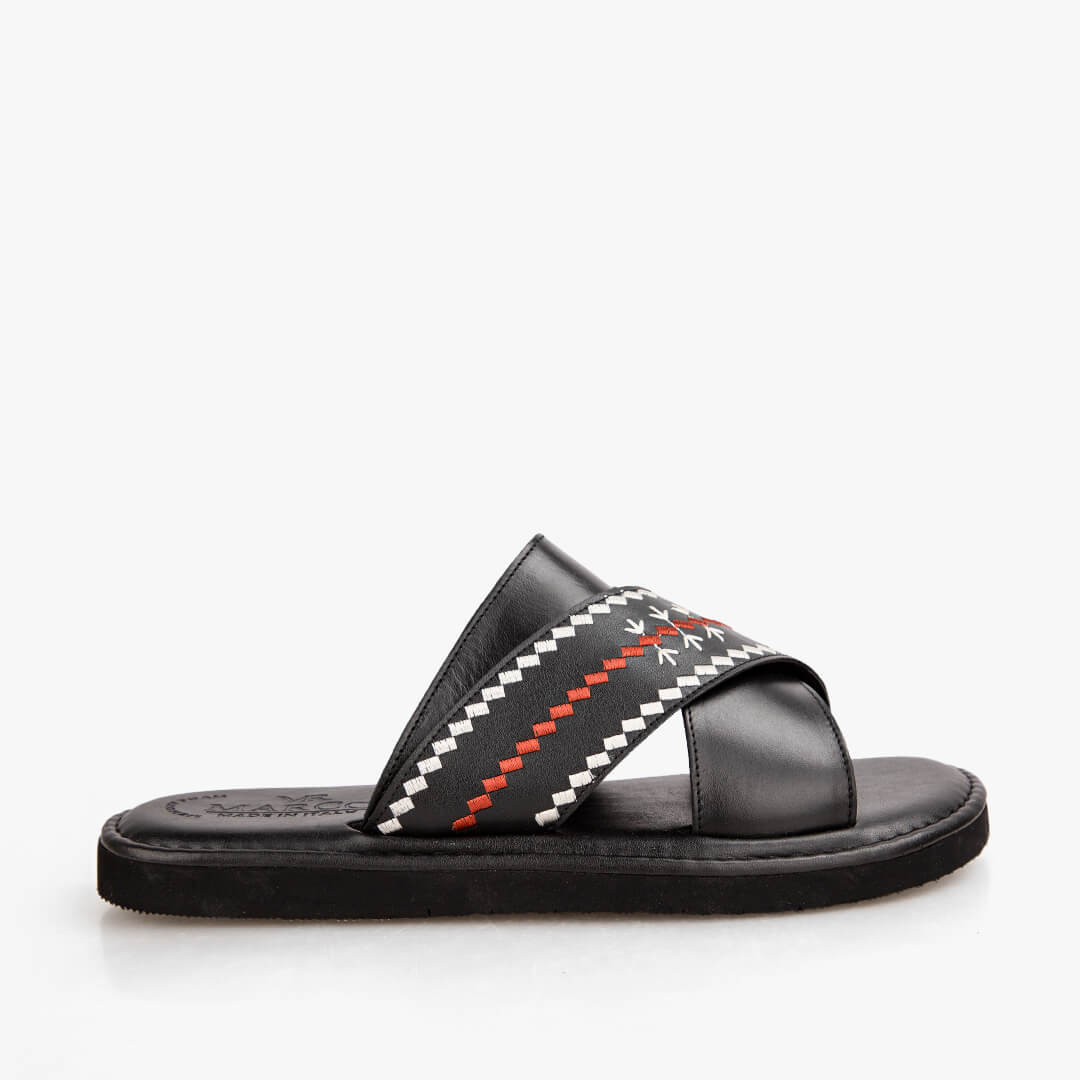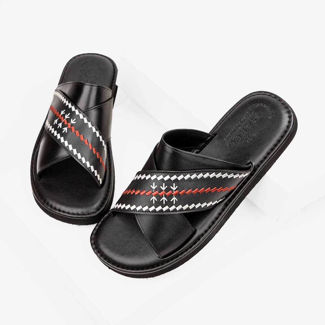 المزايا الرئيسية لنعال رجالي جلد أسود بتطريزات أصلية: