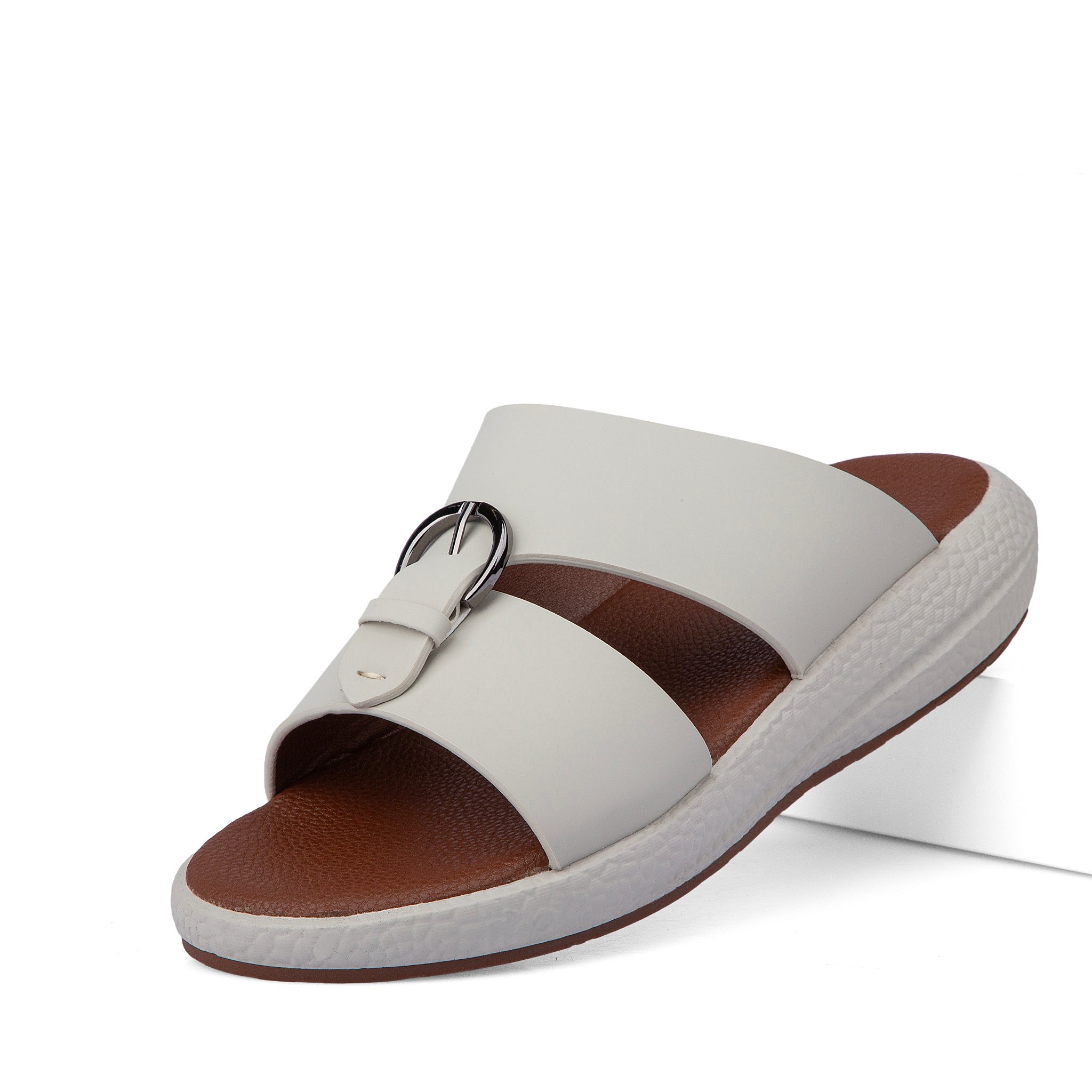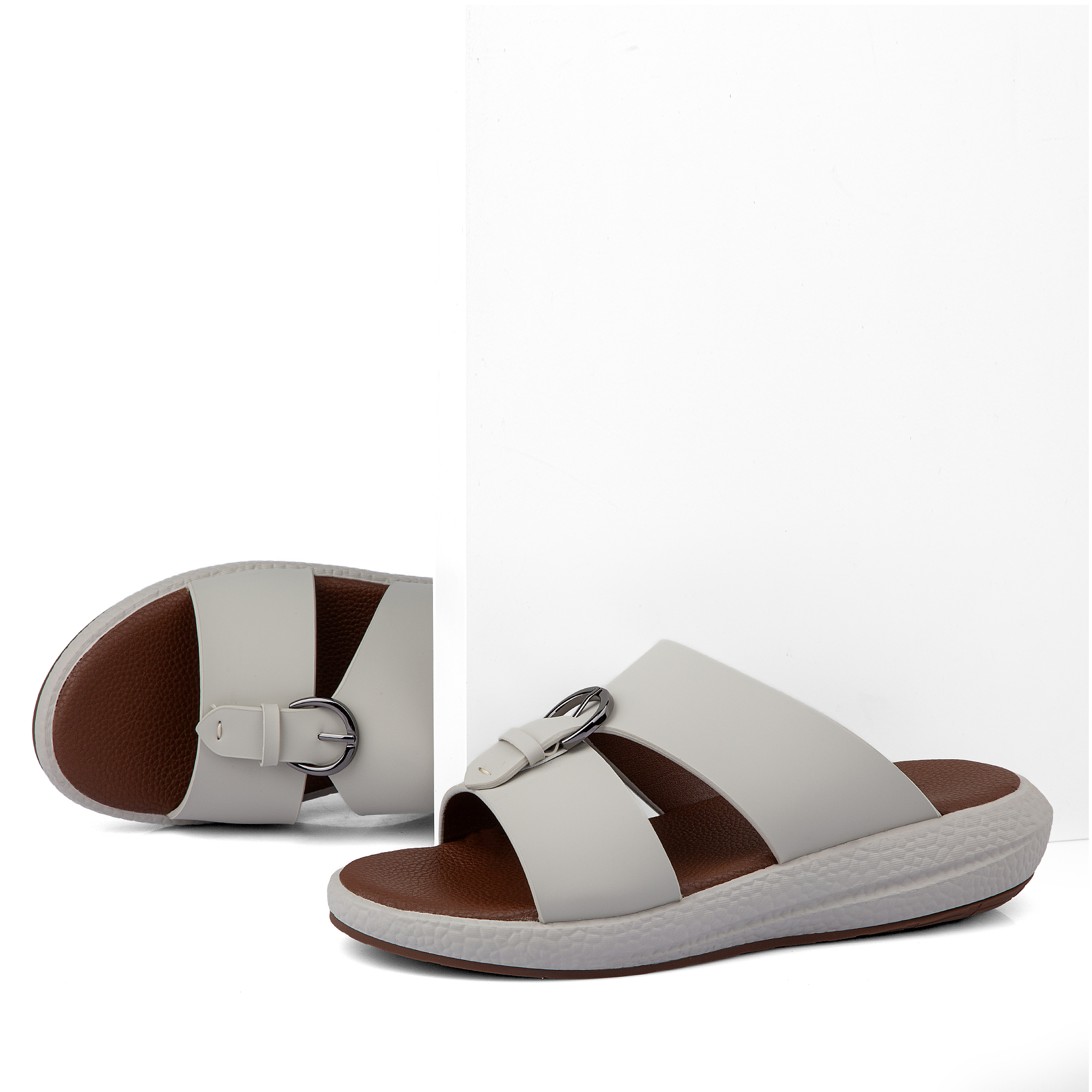 مميزات نعال خليجي جلد بيج وأرضية بنية طبية