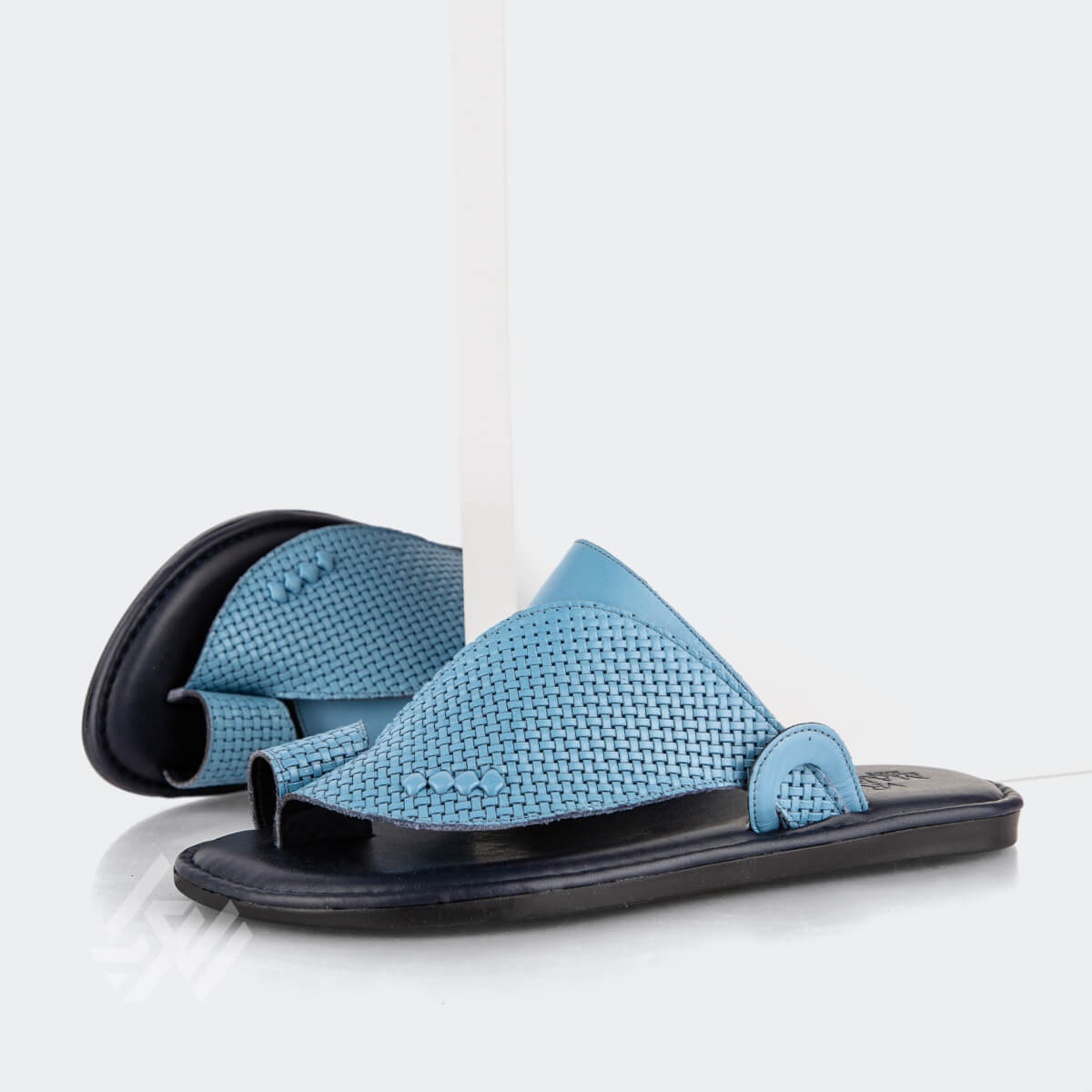 - جلد طبيعي عالي الجودة بتدرجات كحلي وسماوي.