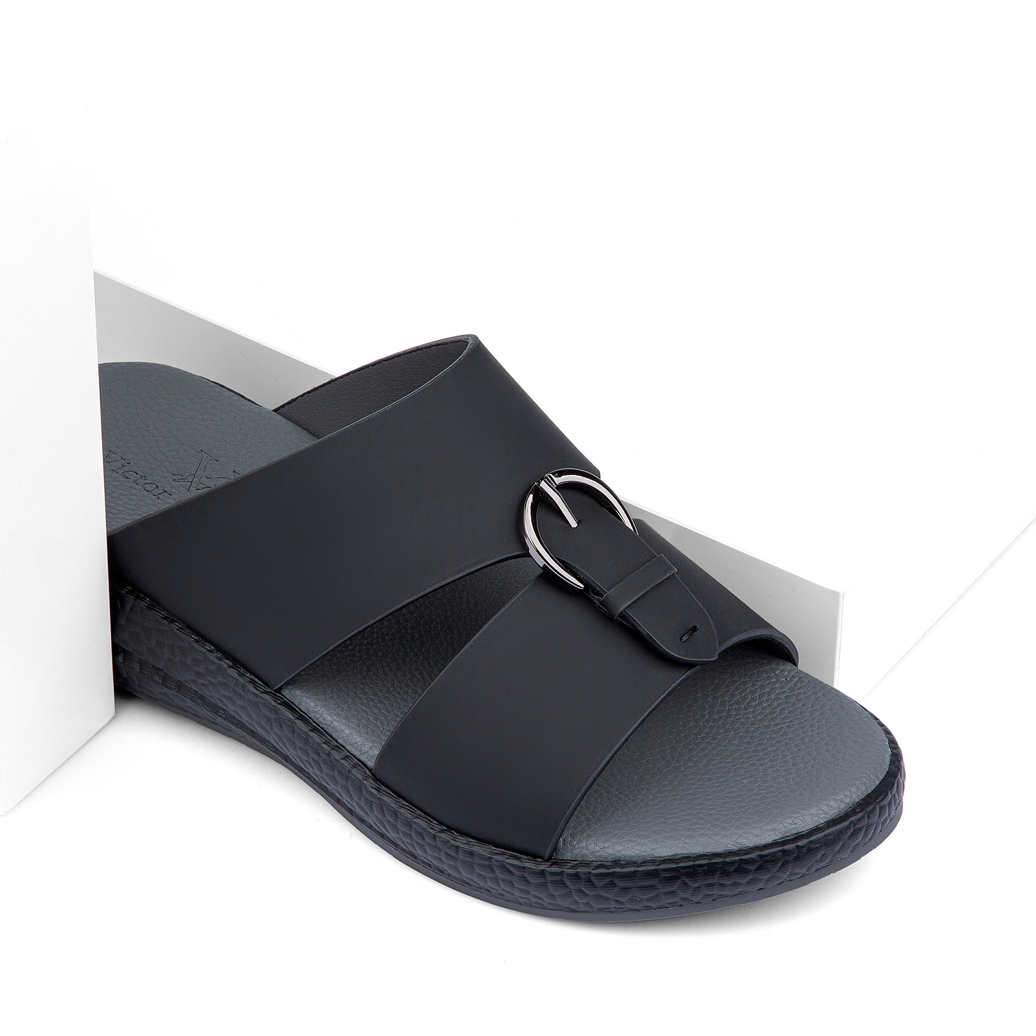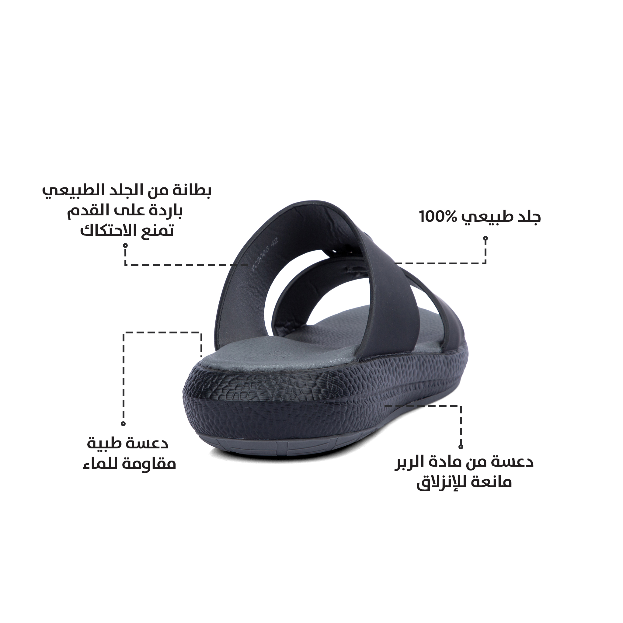 مميزات نعال خليجي طبي جلد طبيعي أسود ورمادي