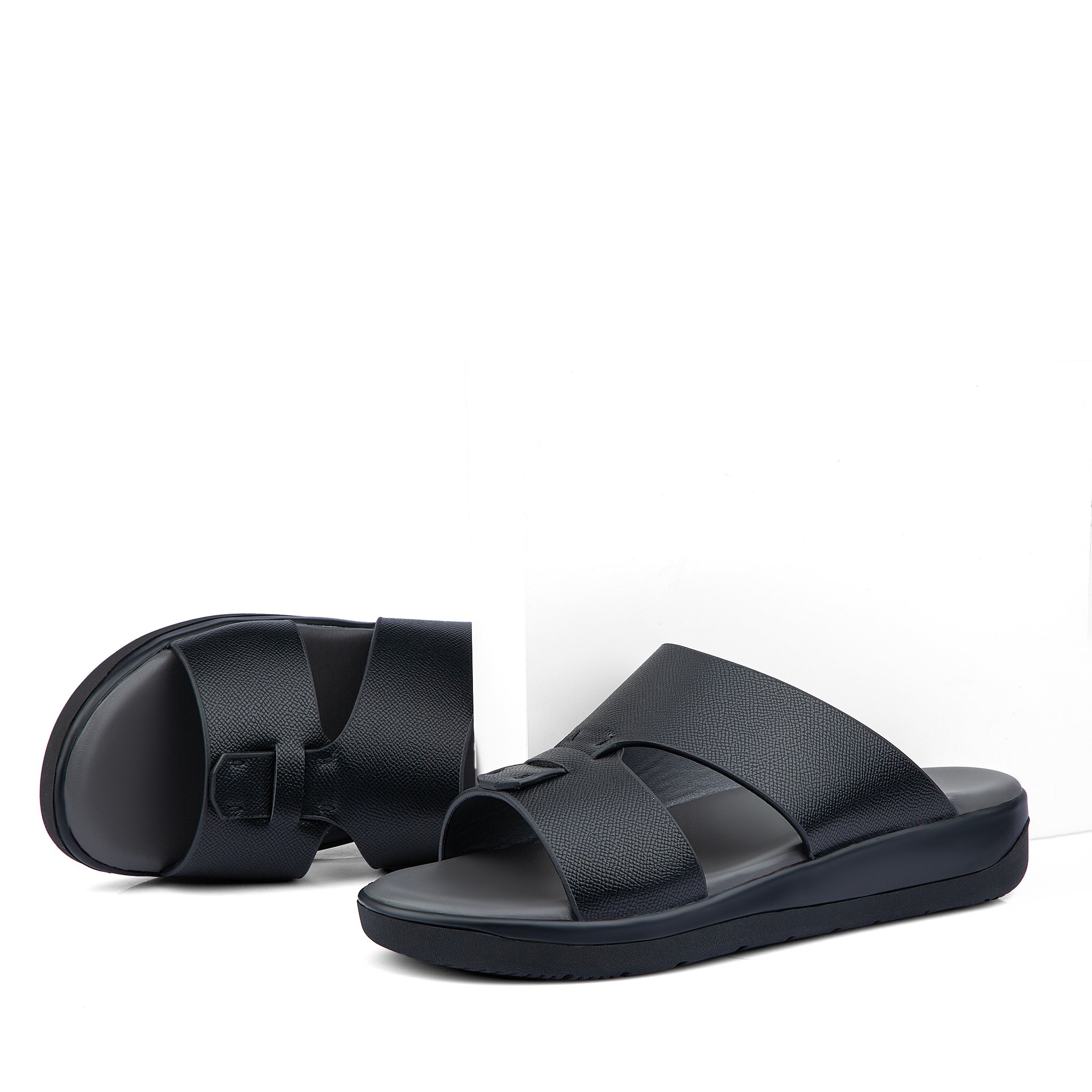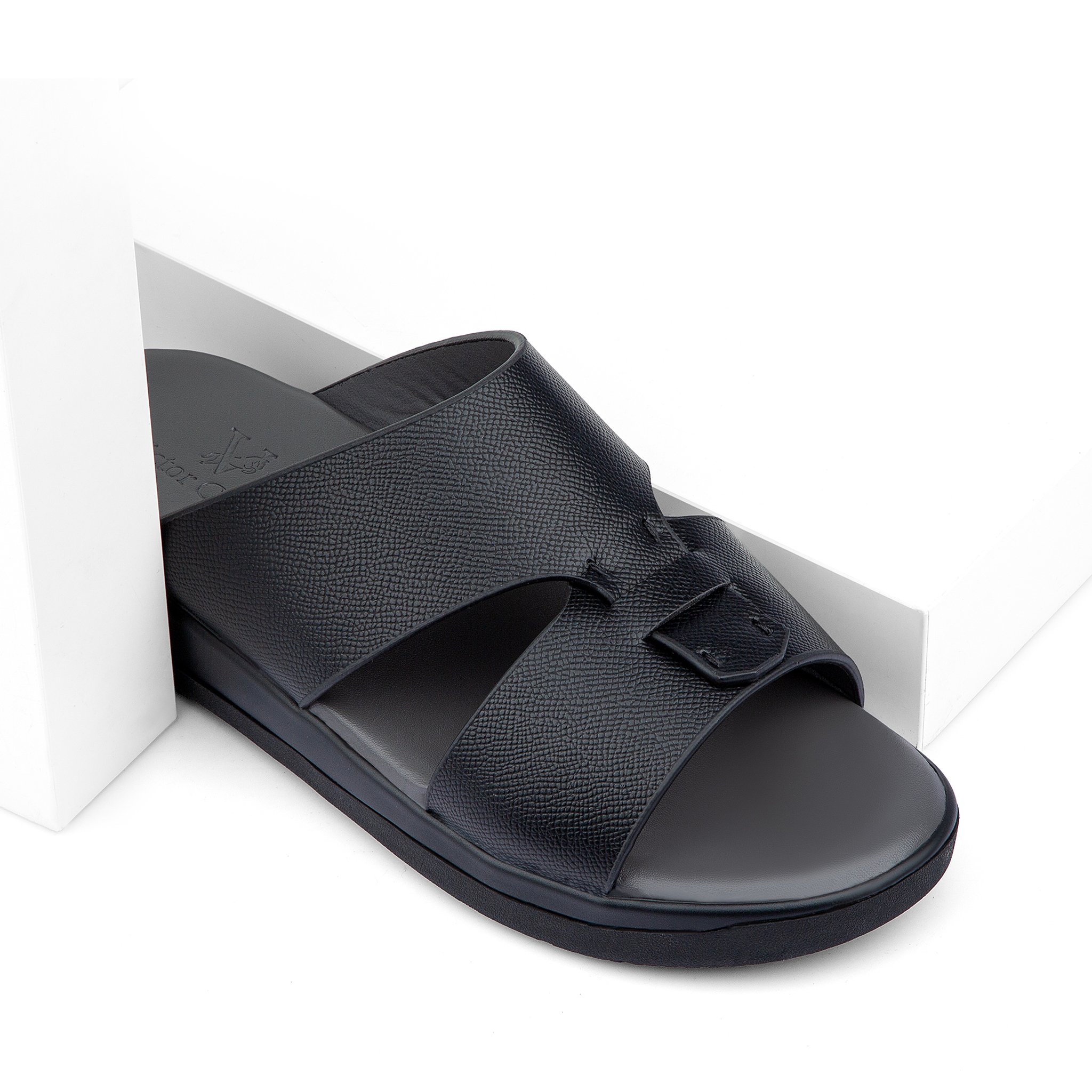 مميزات نعال خليجي من الجلد الأسود بأرضية رمادية طبية:
