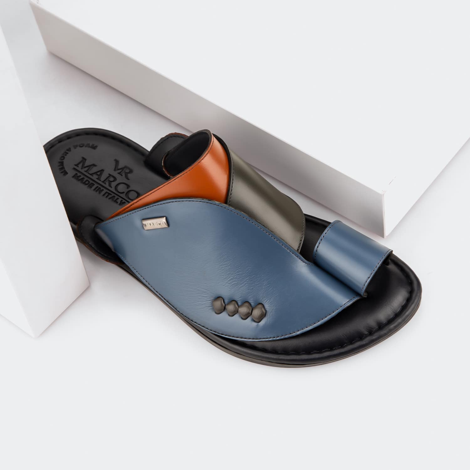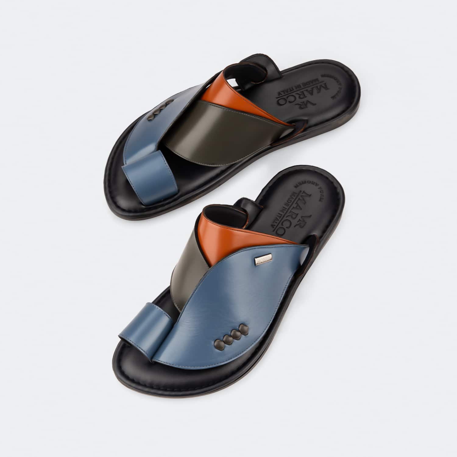 تمتع بمزيج من الأناقة الشرقية والجودة الإيطالية مع هذا النعال الفريد. يتميز بألوان مميزة تشمل الأزرق، البني، والزيتوني، مع تصميم عصري يضفي لمسة من التميز على إطلالتك اليومية أو الرسمية. مصنوع بخامات فائقة الجودة مع أرضية ميموري فوم لراحة تدوم طوال اليوم.