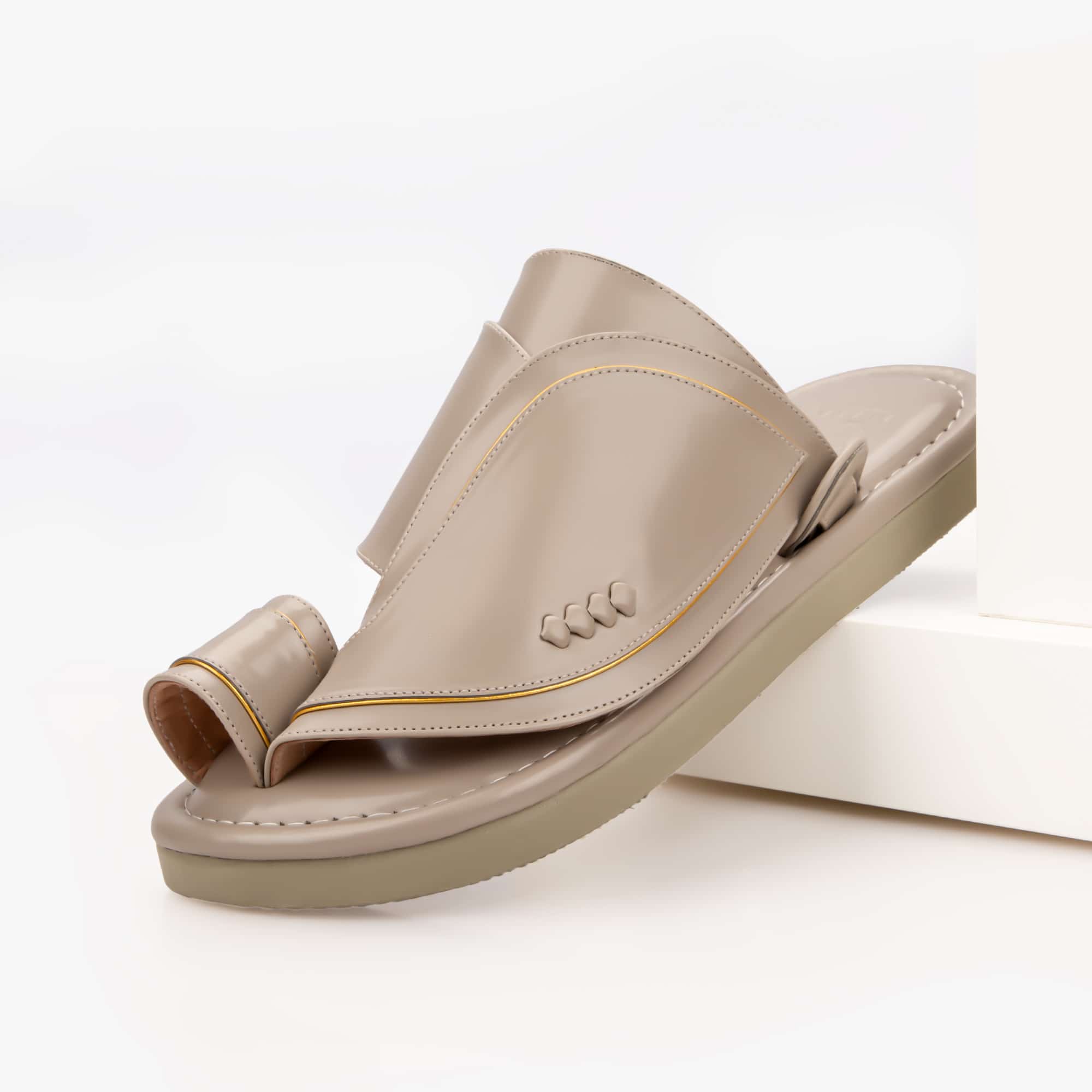 تألق بالأصالة مع مداس شرقي جلد طبيعي بيج داكن بتصميم فاخر.