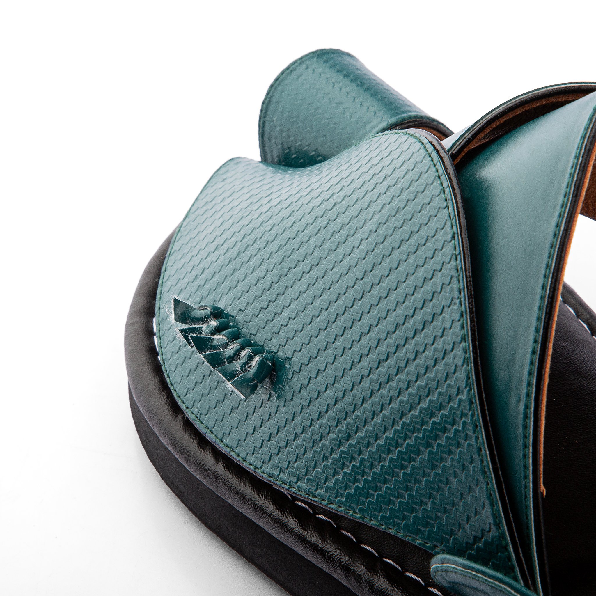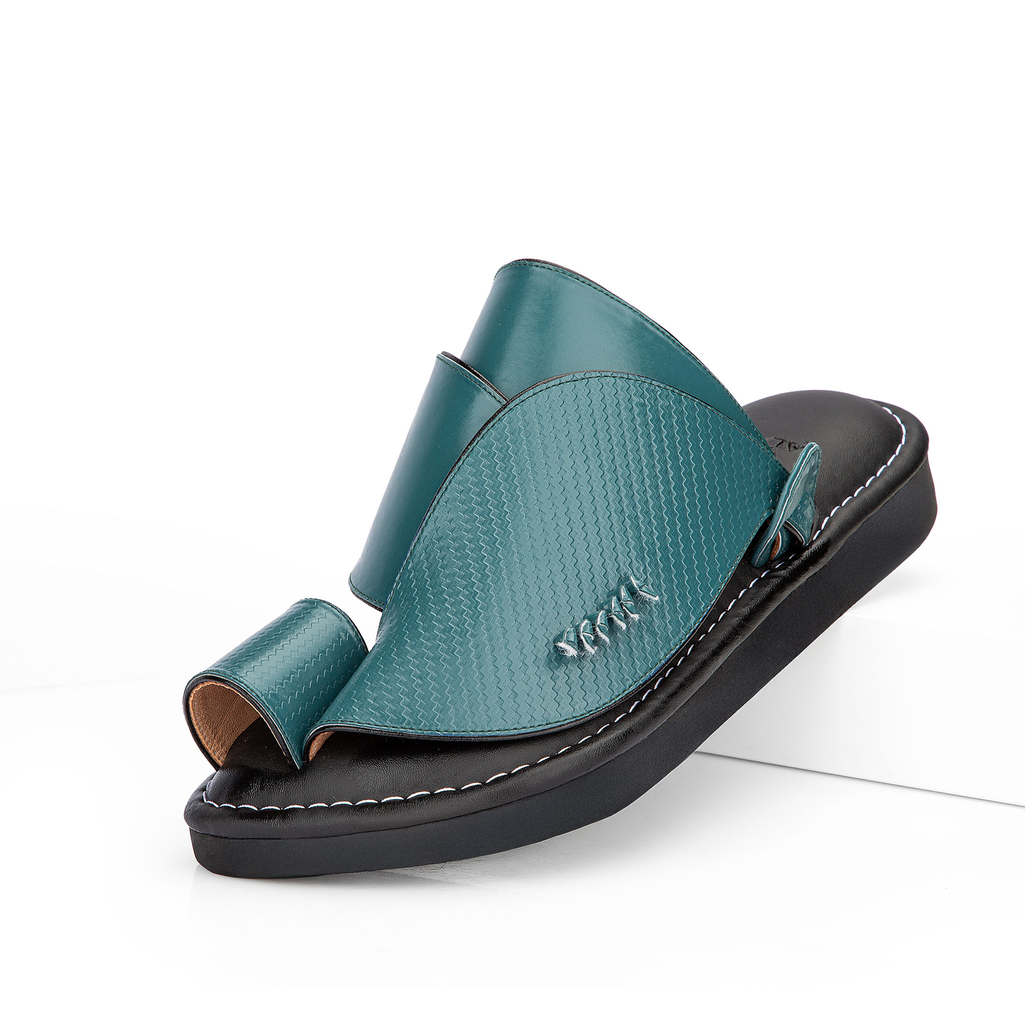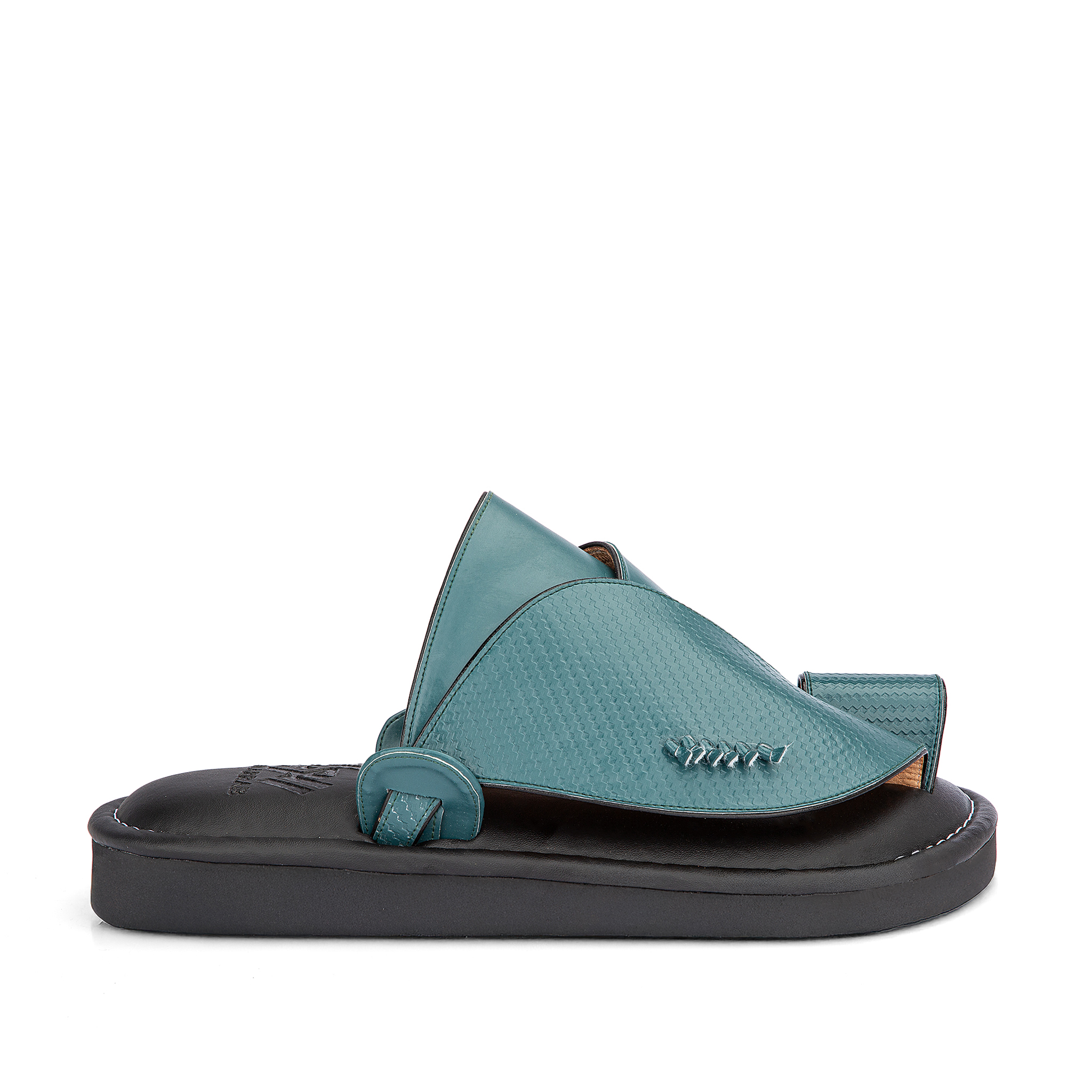 أضف لمسة من الفخامة والتميز لإطلالتك مع هذا النعال الشرقي المبدع من العراب، المصنوع من جلد طبيعي نقي بلون فيروزي غامق وجذاب. تصميم راقٍ يجمع بين الأصالة والعصرية، مع بطانة طبية فائقة الراحة. هذا النعال الجميل يضمن لك مظهرًا خلّابًا وراحة لا تُضاهى في كل خطوة. قطعة فارهة تليق بذوقك الرفيع.