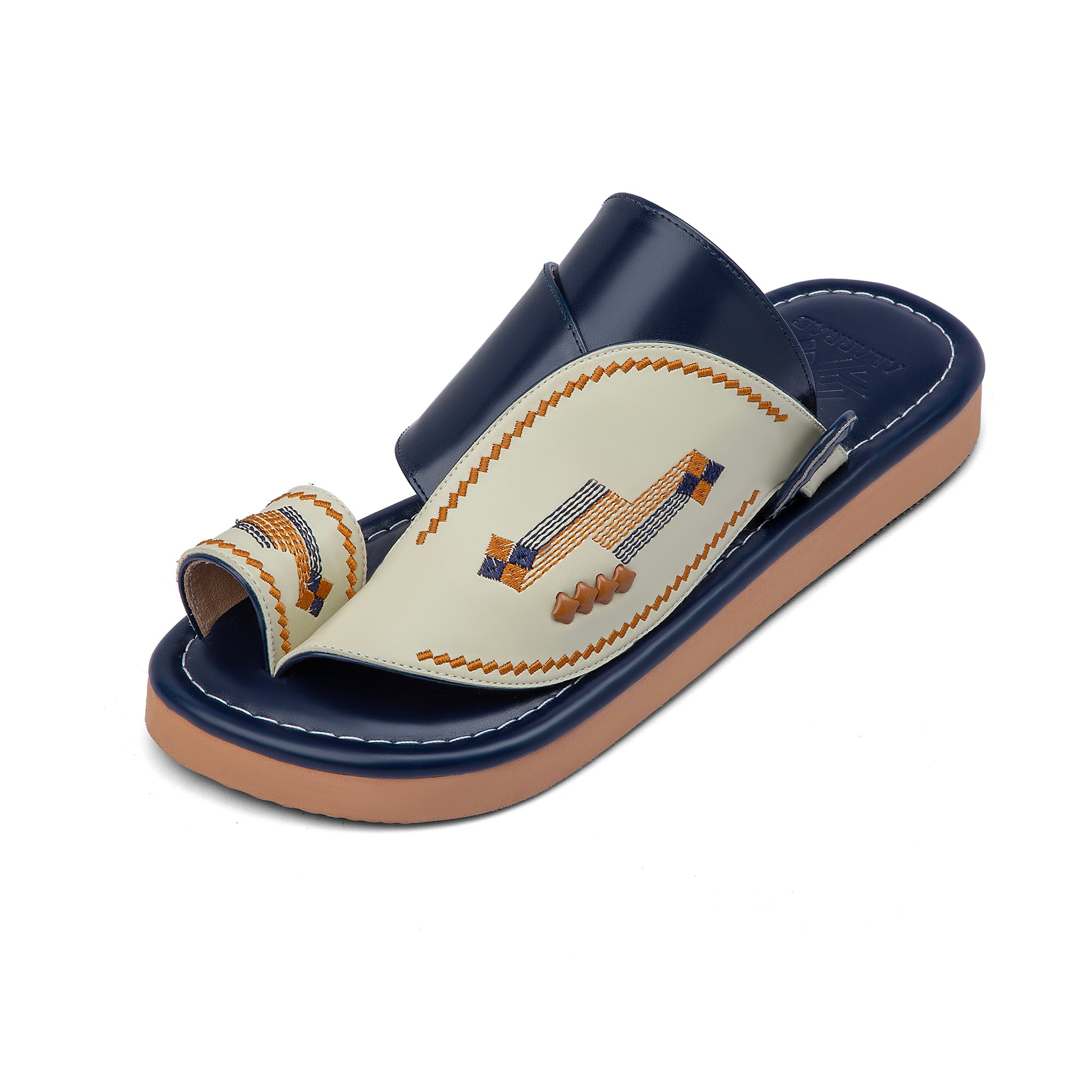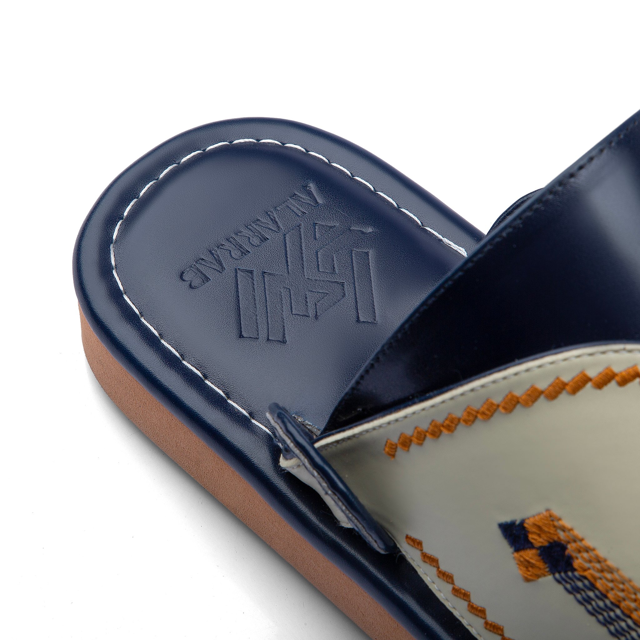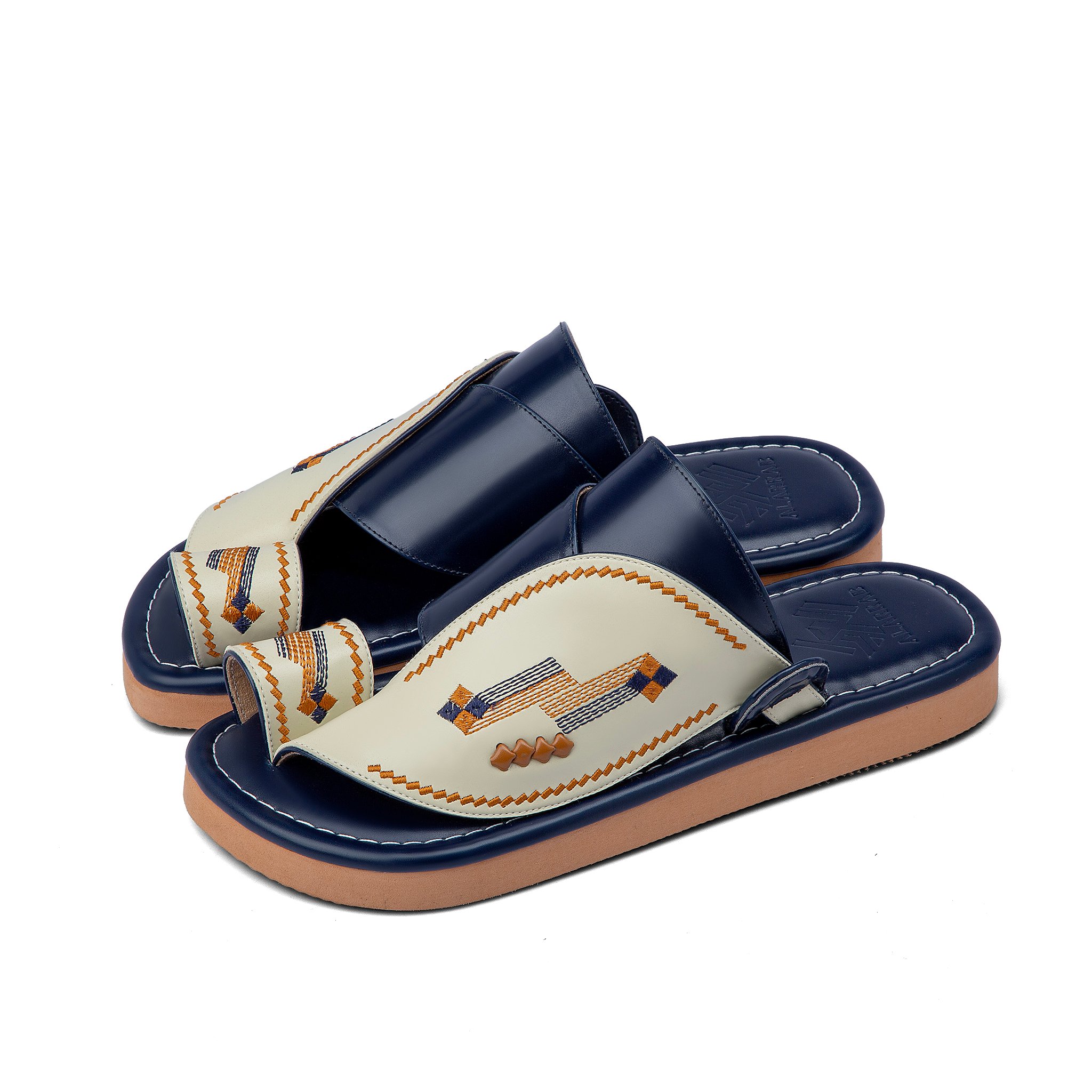 نعال شرقي مطرز يدويًا باللونين كحلي والبيج