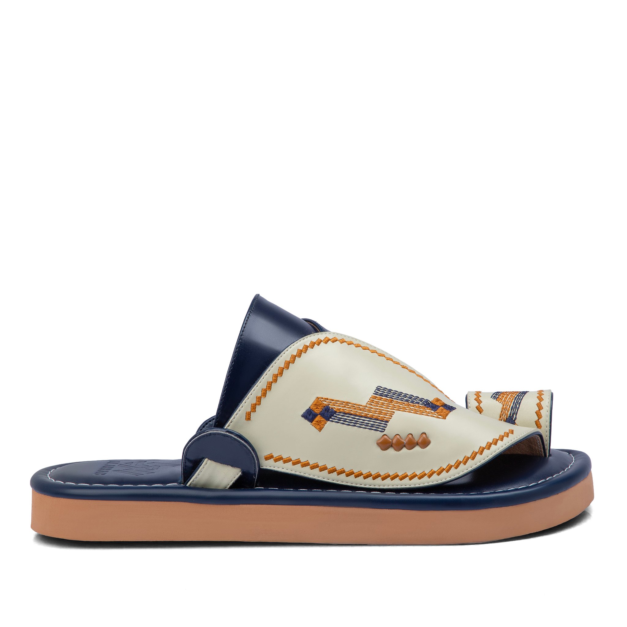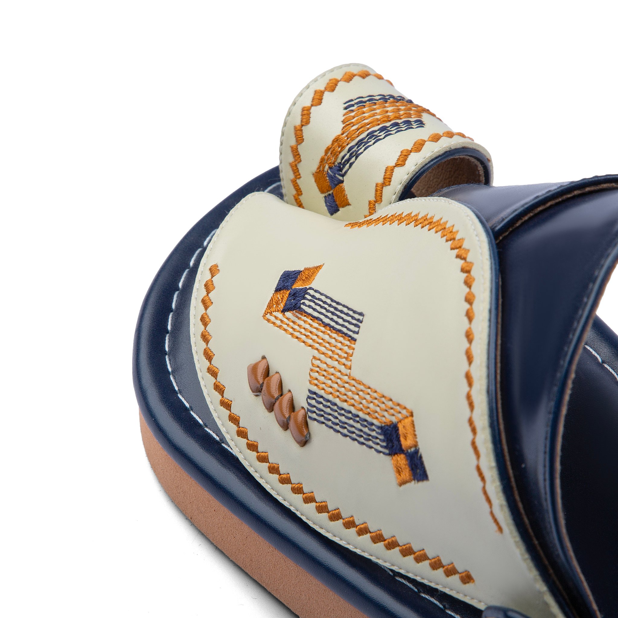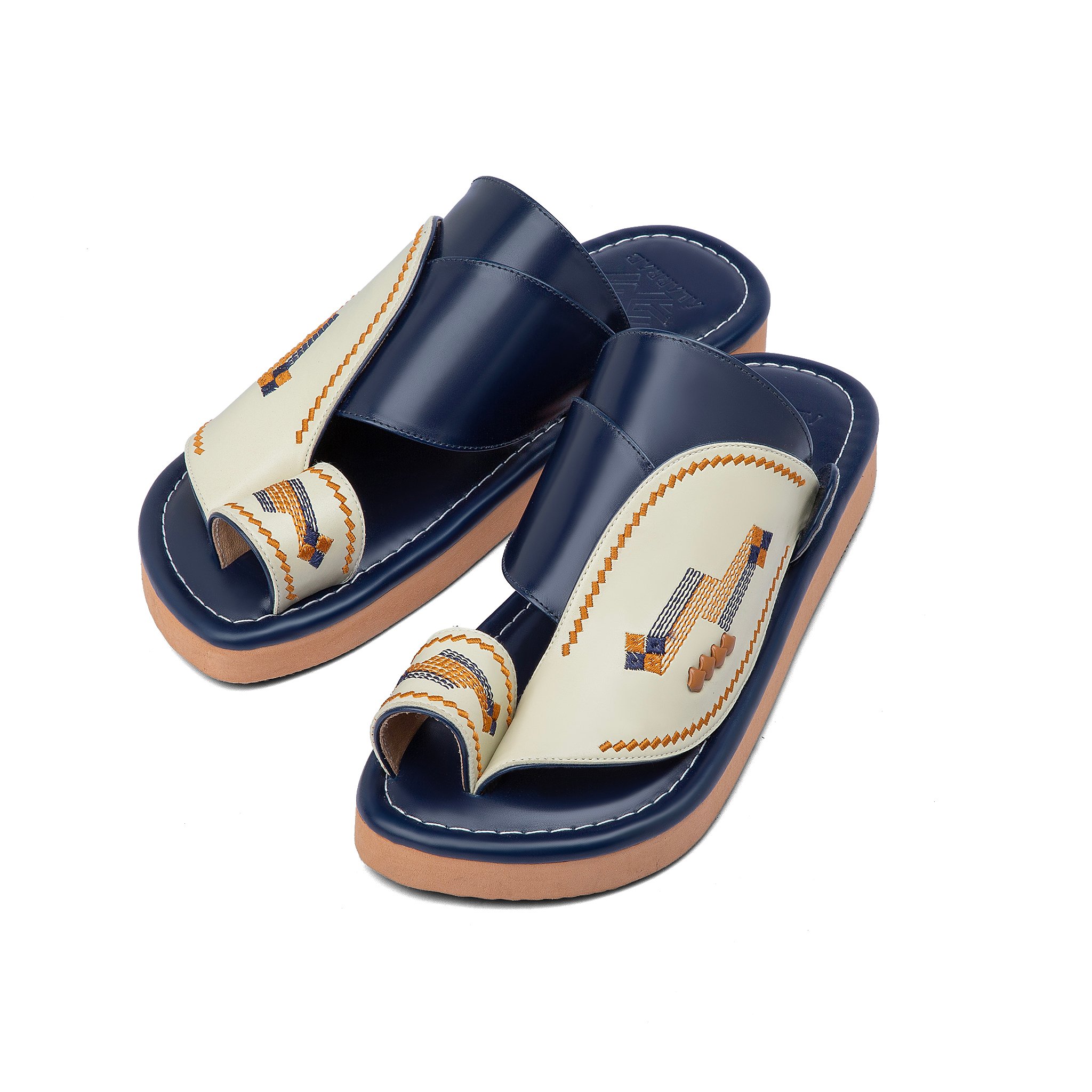 نعال شرقي مطرز يدويًا باللونين كحلي والبيج