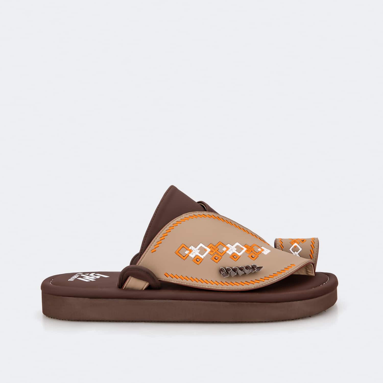 نعال شرقي مطرز بني وبيج: لمسة خليجية تعكس أصالتك!