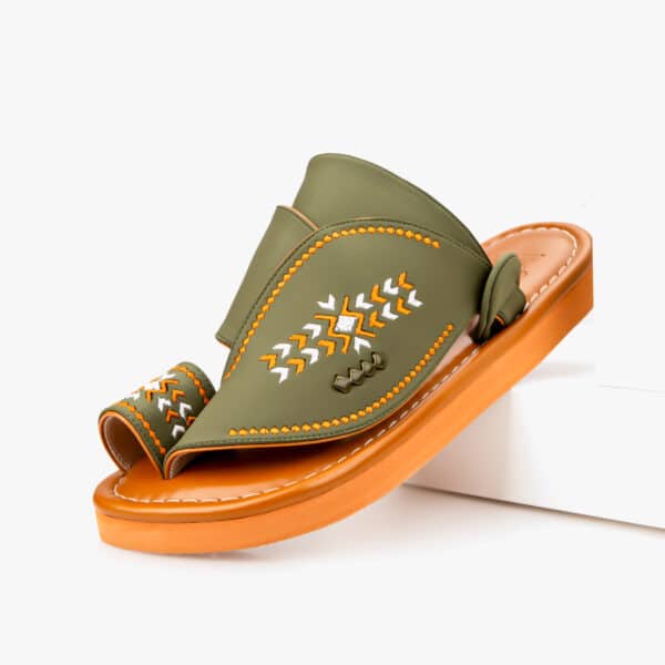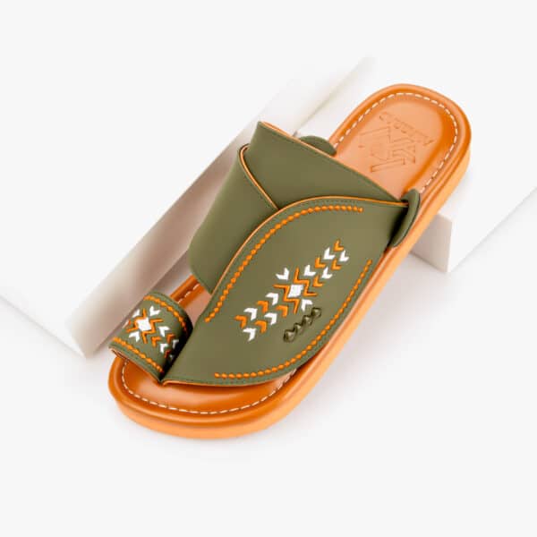 مميزات نعال شرقي مطرز زيتوني وبرتقالي: