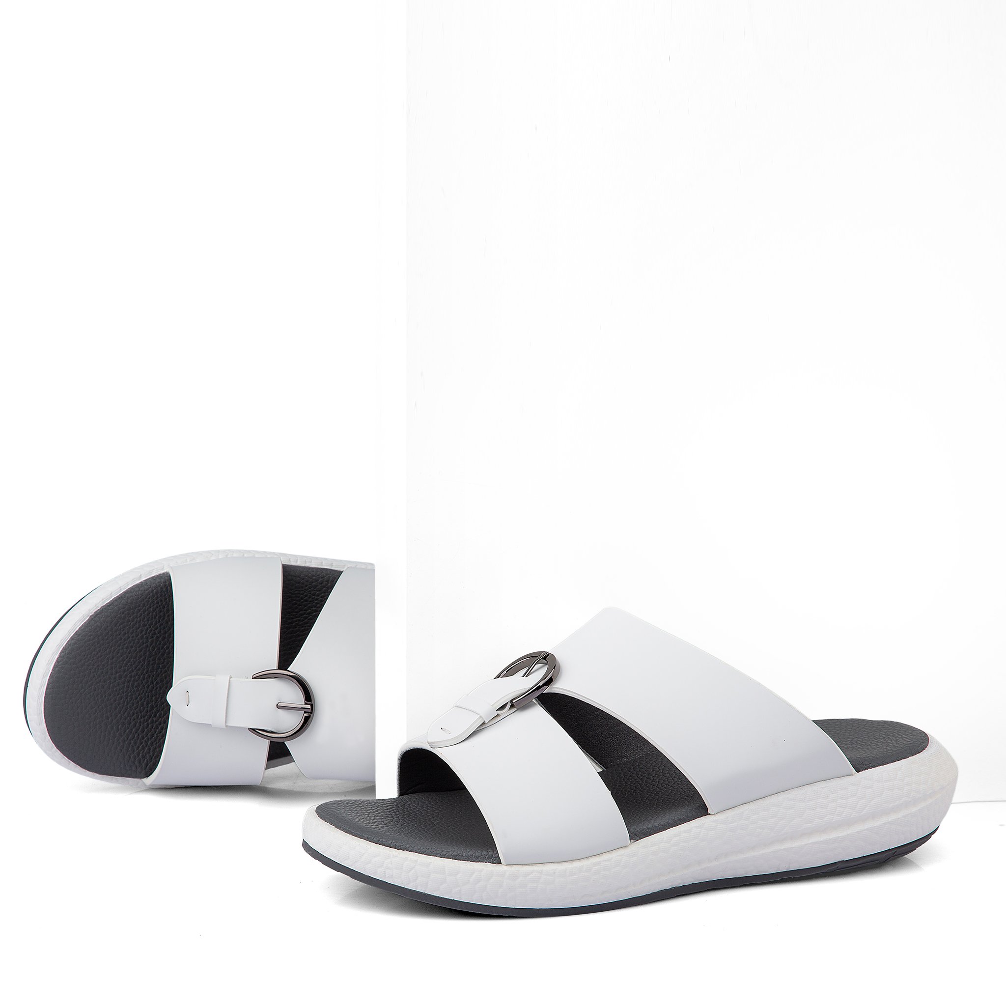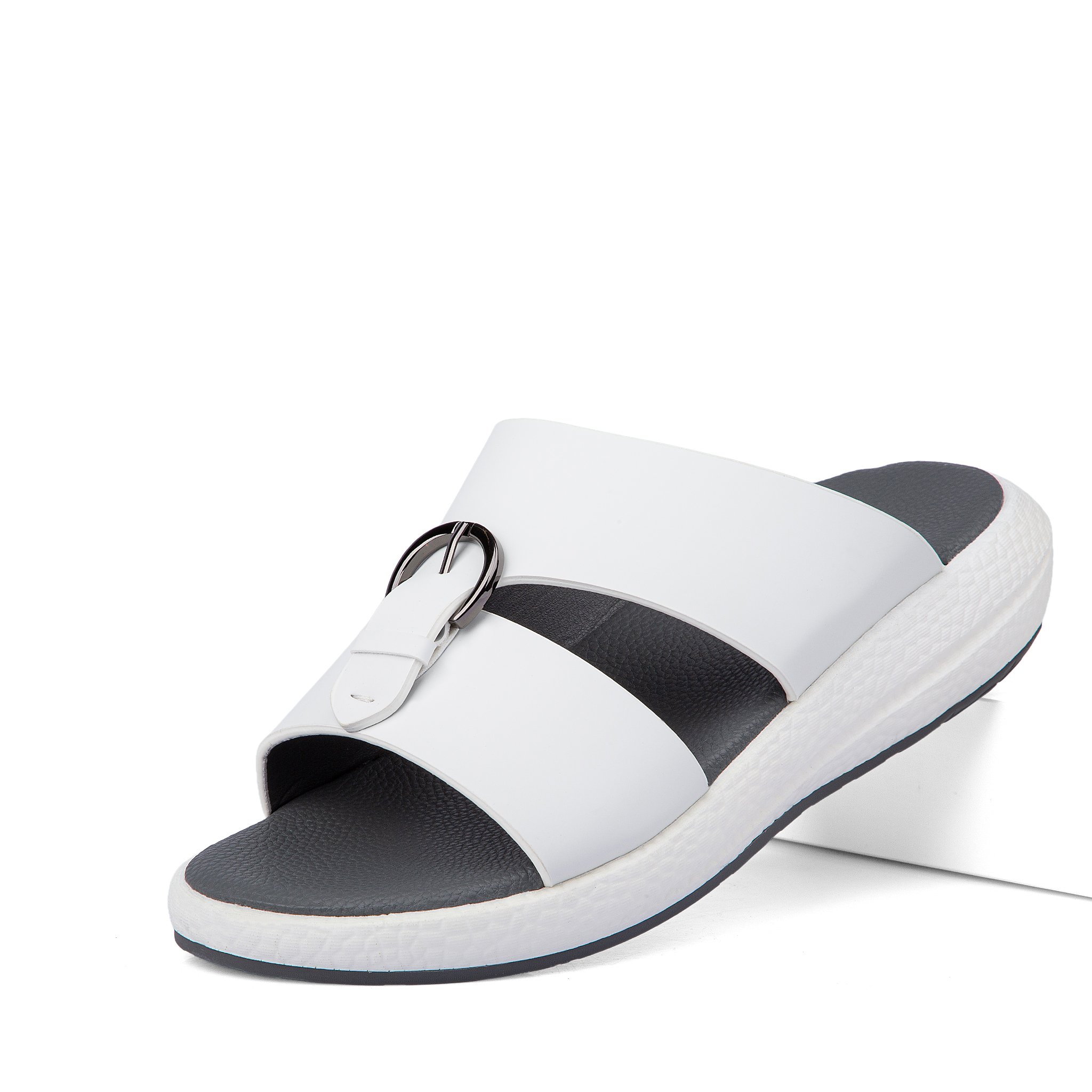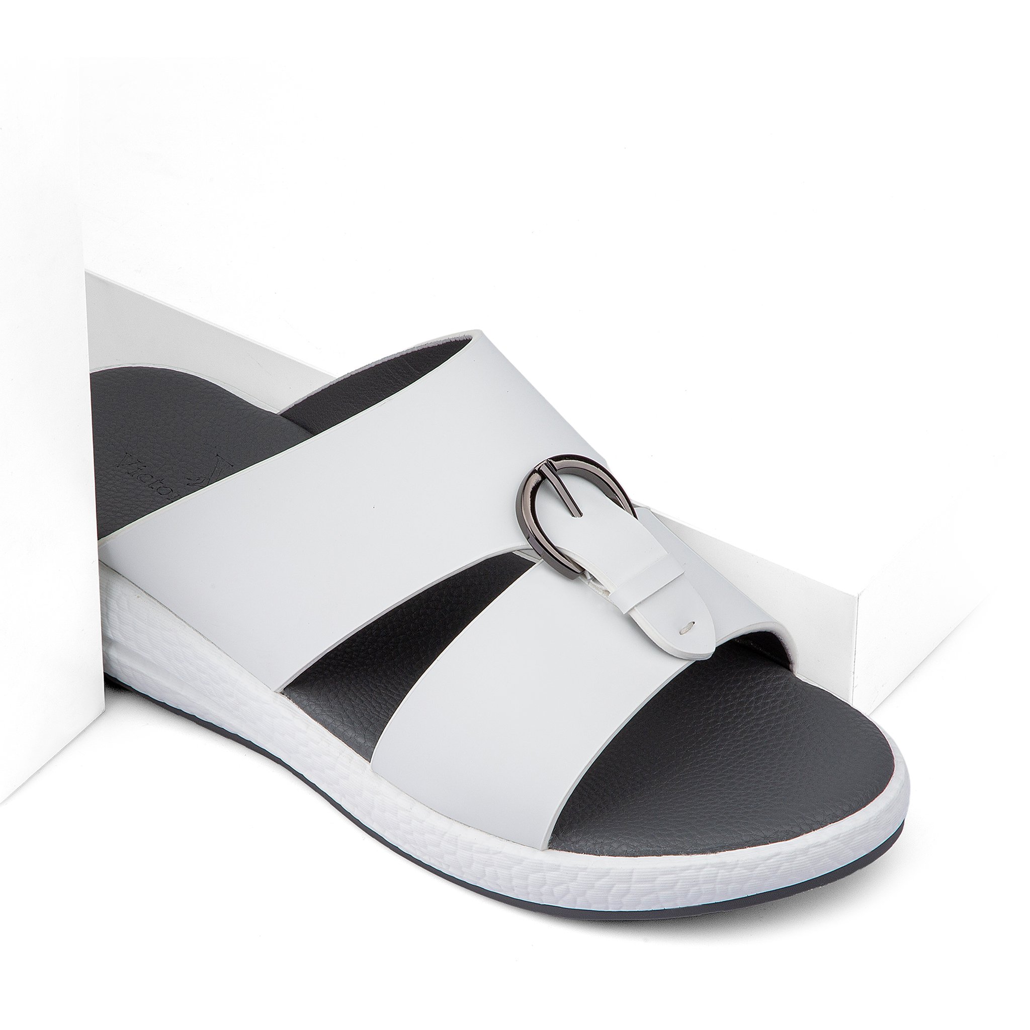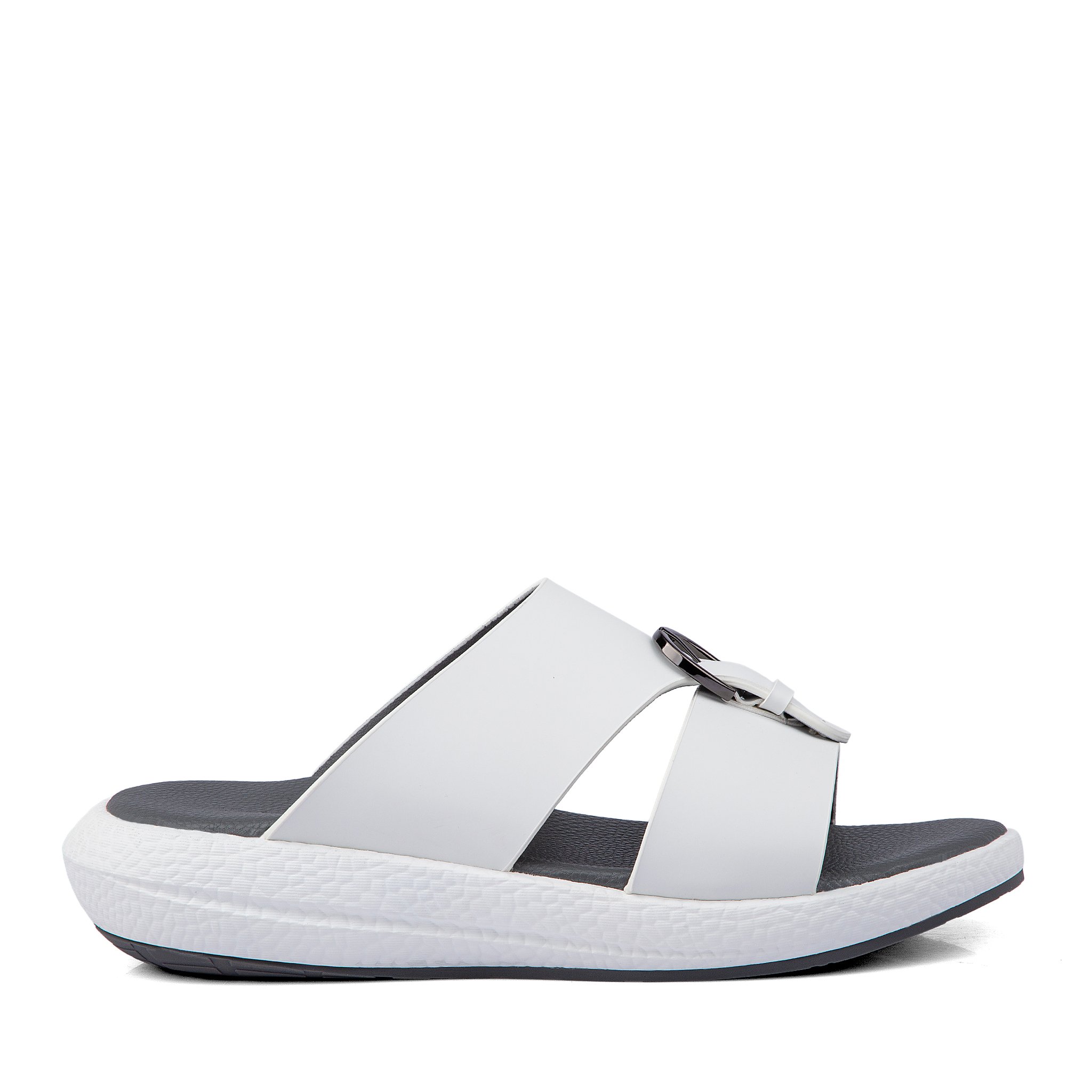 نعال خليجي جلد أبيض وأرضية طبية رمادية