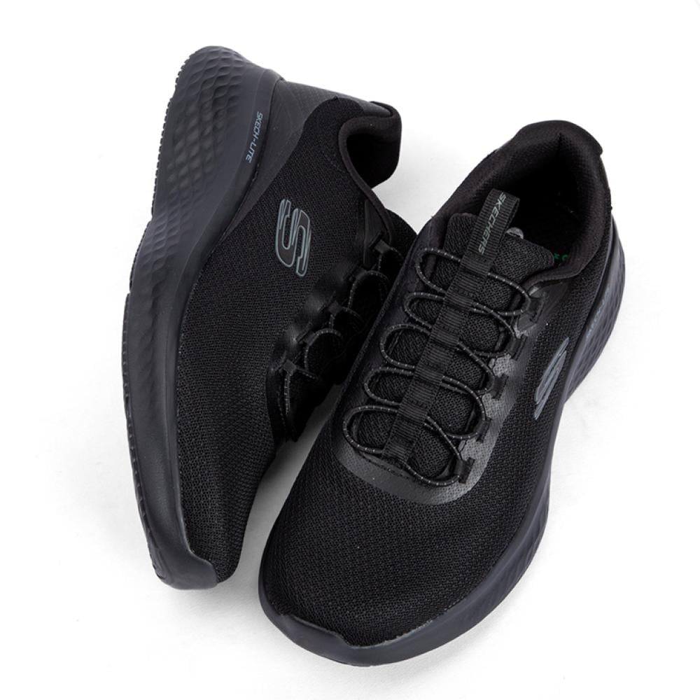 Skech-Lite Pro - Frenner الأسود هو الحذاء المثالي للباحثين عن الراحة والجودة بتصميم مستدام. يوفر تجربة استخدام فريدة بفضل تقنيات Skechers Air-Cooled Memory Foam® والنعل المرن.